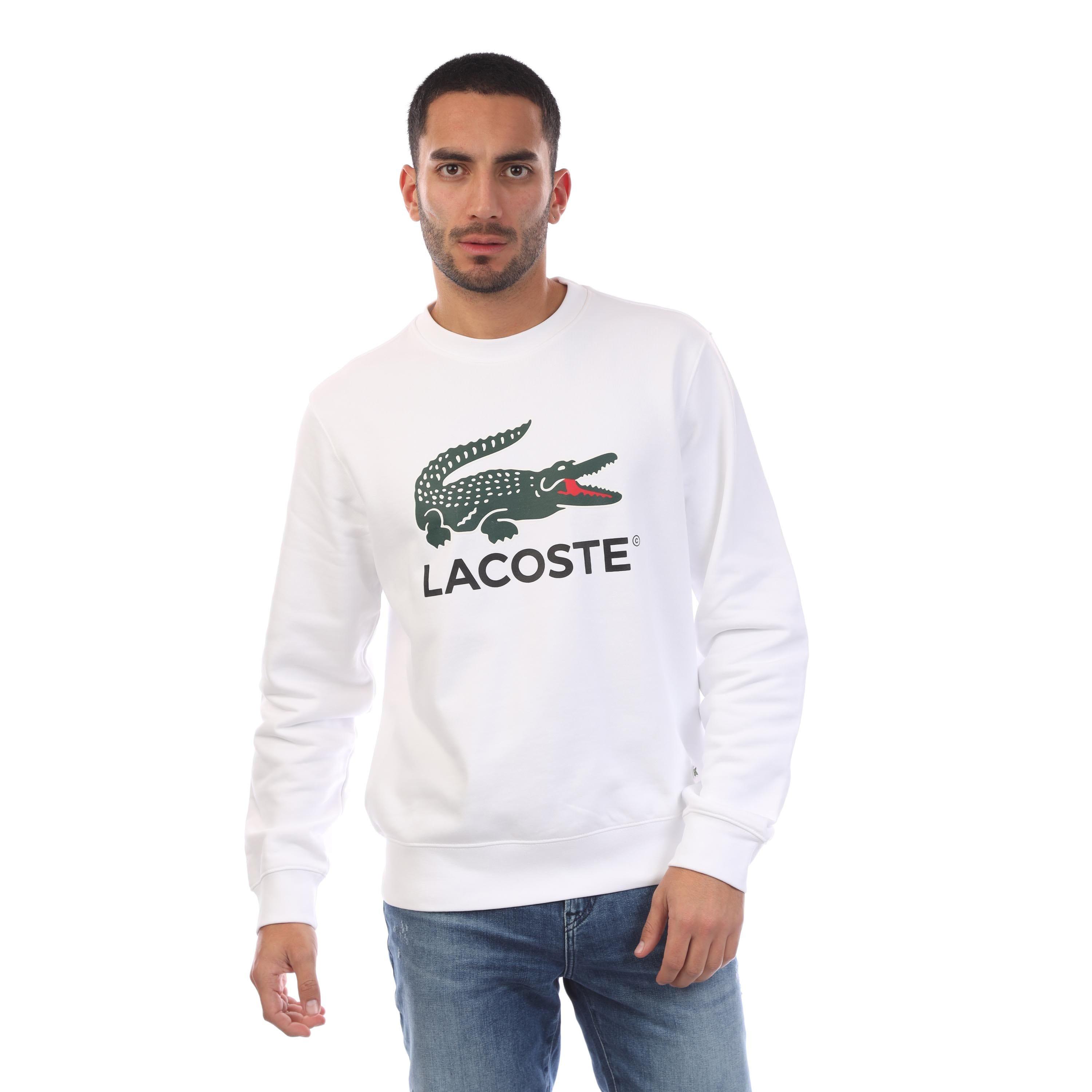 The Lacoste crocodile is the star of this crew neck sweatshirt. Featuring a wealth of signature details from Lacoste sportswear creators since 1933: pure clean lines comfortable fleece fabric and bold modern graphics. A menswear essential featuring our classic crocodile at the hem.
