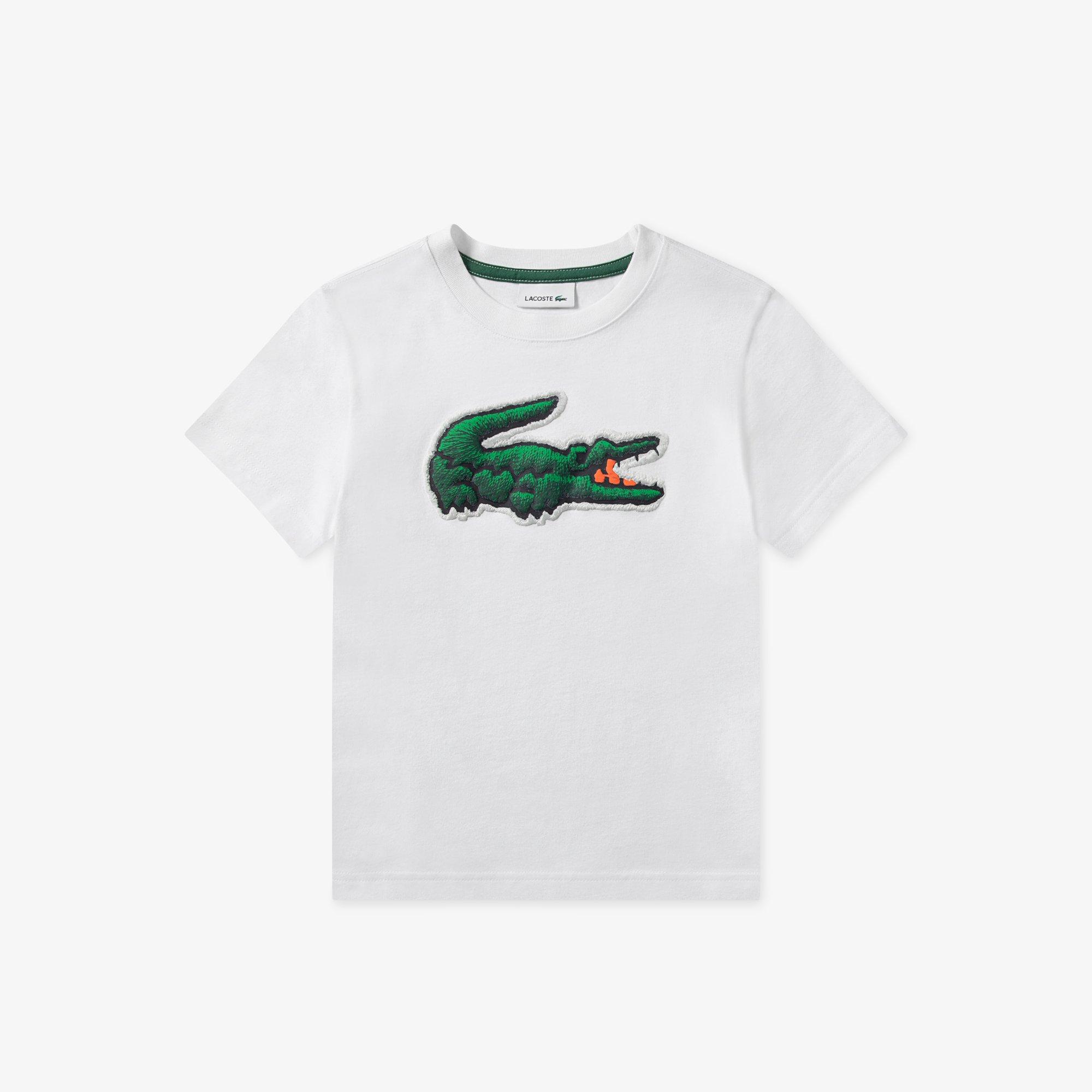 The Lacoste Kids' Puff Logo T-Shirt is cut to a regular fit with a clean, straightforward design. The crocodile logo is finished with a raised, textured surface.