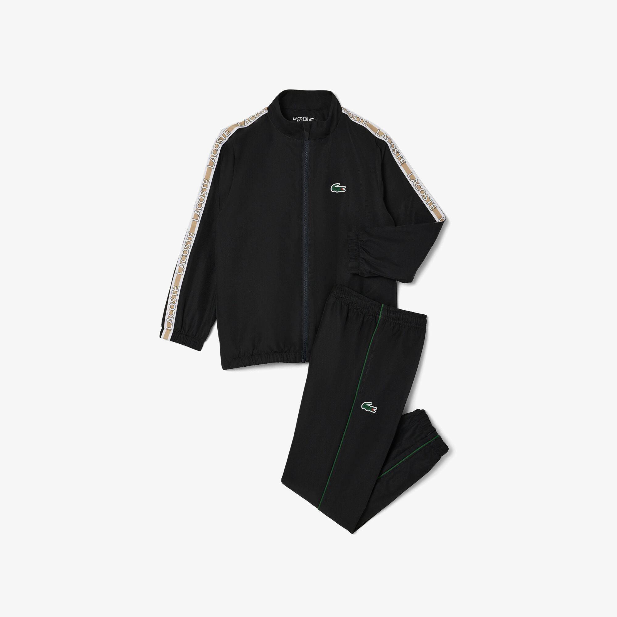 The Lacoste Kids' Soft Fabric Tracksuit Set brings sporty style with a coordinated design built for active days. This tracksuit delivers flexibility and comfort, keeping young wearers comfortable during play or downtime.