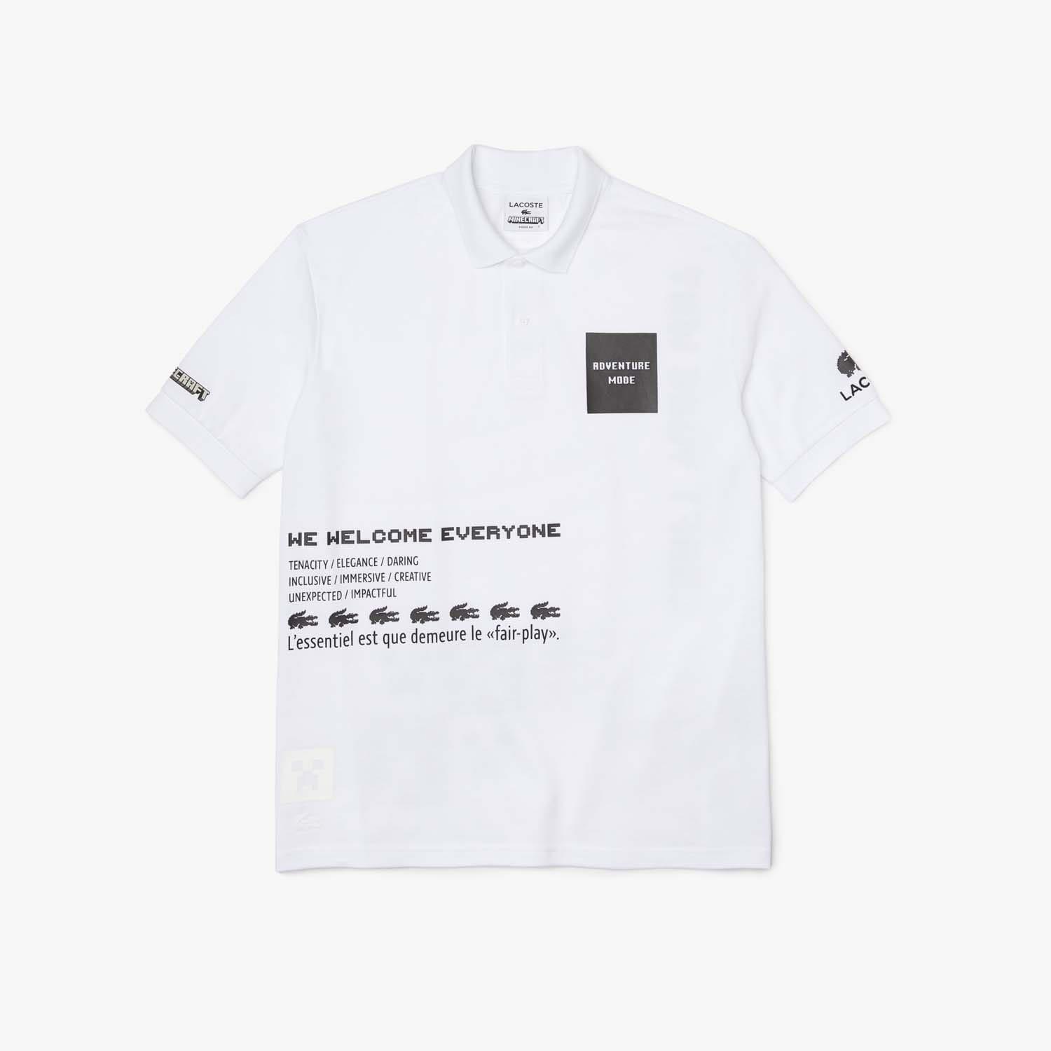 Men's Lacoste L!VE x Minecraft Loose Fit Organic Cotton Polo Shirt organic cotton piqu, Ribbed polo shirt collar with two square buttons with Minecraft branding Loose fit Ribbed finishes at sleeve ends Prints on chest sleeves and back