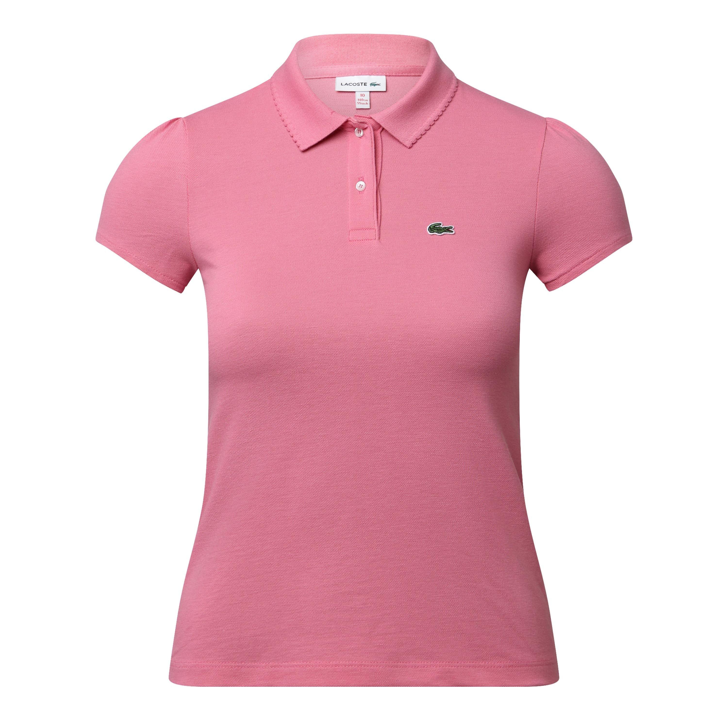 Juniors Lacoste Scalloped Collar Mini Polo Shirt in pink.