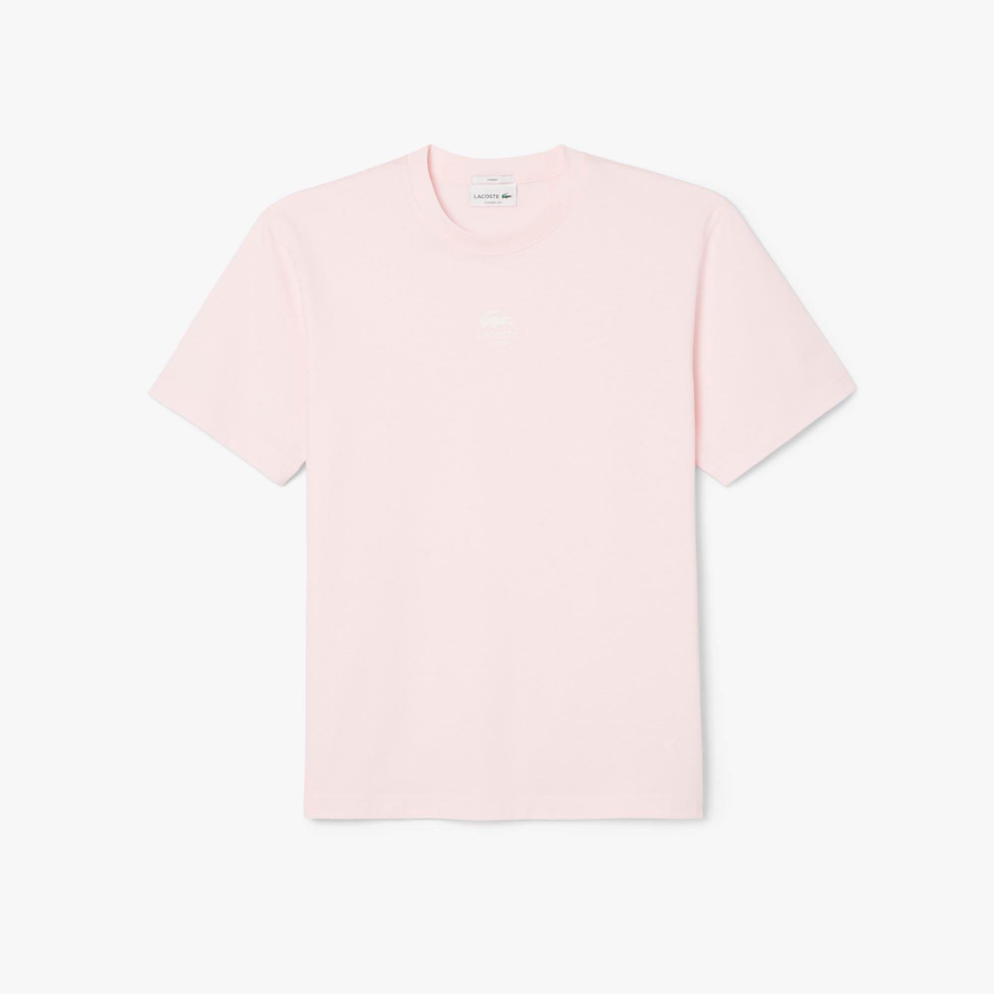 Unisex Lacoste Signature Print Cotton T-Shirt in flamingo