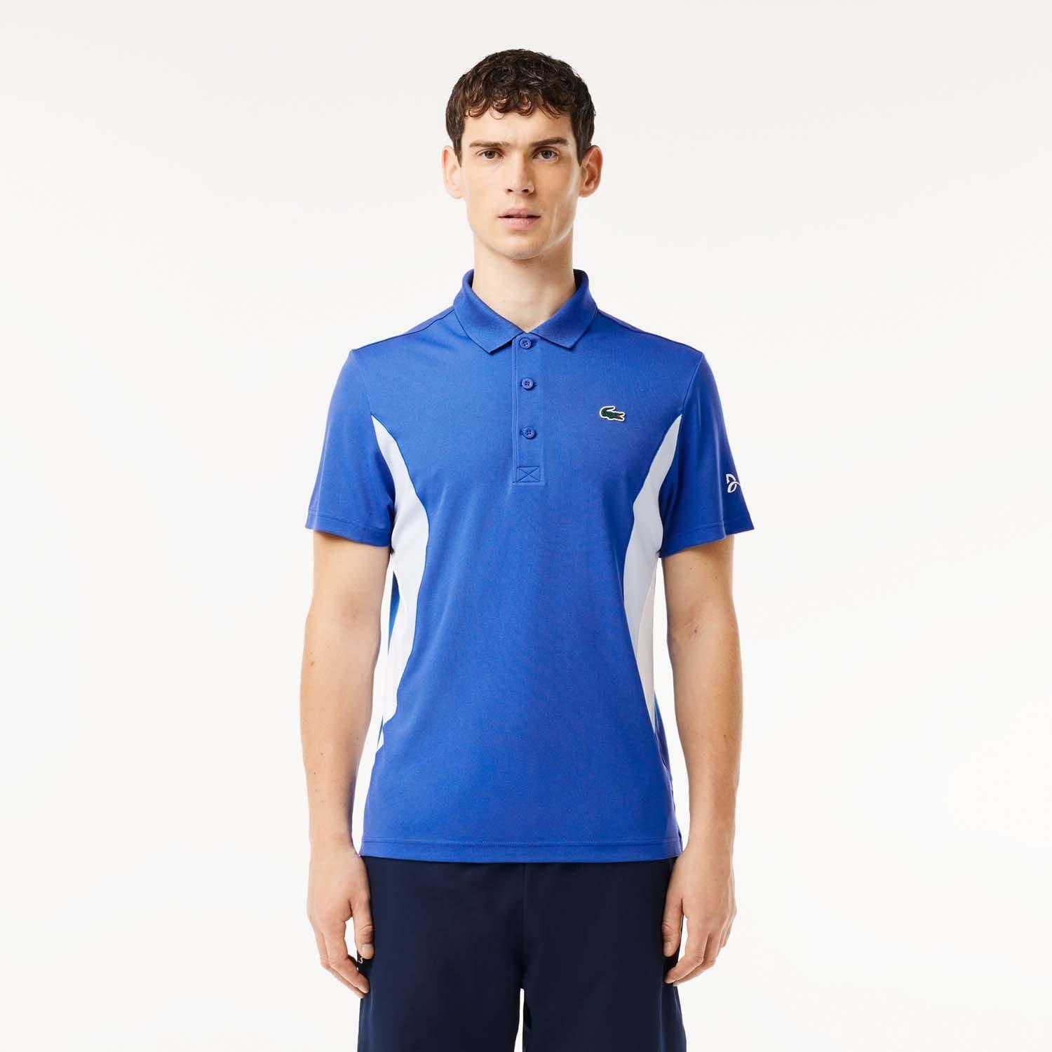 Classic collar. Short sleeves. Three button placket. Contrast sides. Silicone crocodile on chest. Regular fit straight cut.