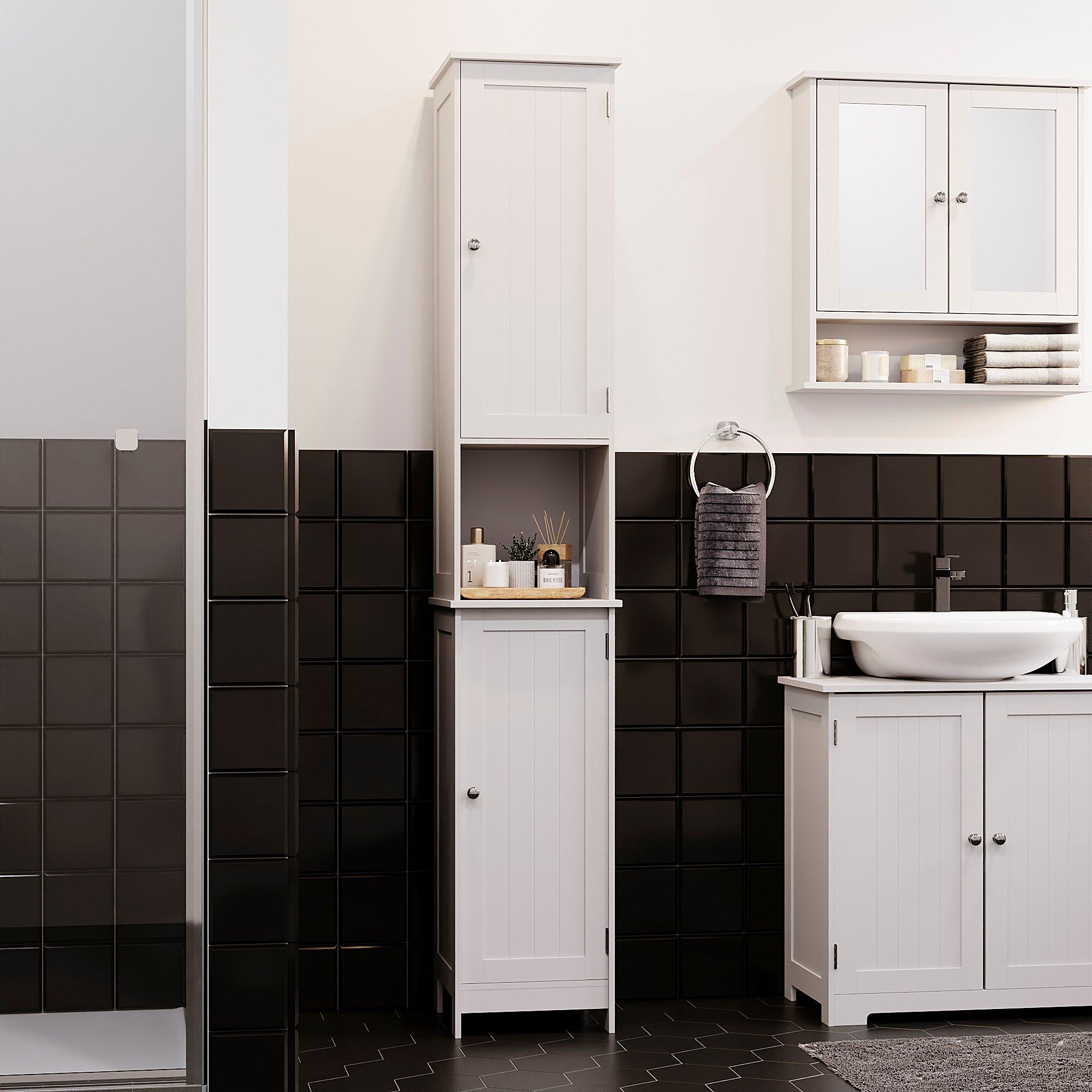 Featuring two smooth-opening doors, the cabinet keeps your bathroom essentials neatly hidden behind internal shelves, helping maintain a clutter-free look. An open middle shelf adds both style and convenience—perfect for displaying décor or storing everyday items within easy reach.