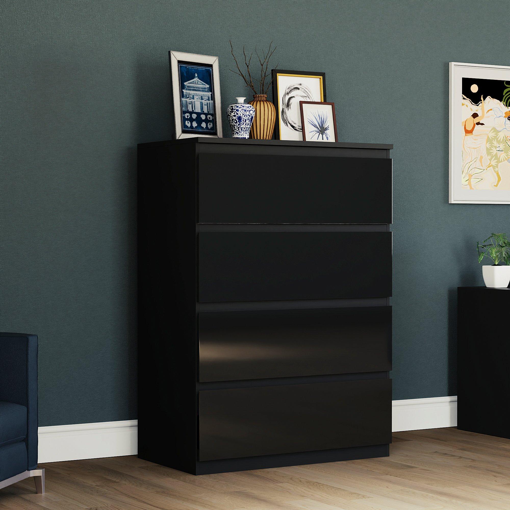 Introducing our Glinton 4-Drawer Chest of Drawers – a sleek and contemporary storage solution perfect for any bedroom or living area. Crafted from high-quality materials, this chest features stylish high gloss drawer fronts contrasted with a matte carcass for a bold and modern look.