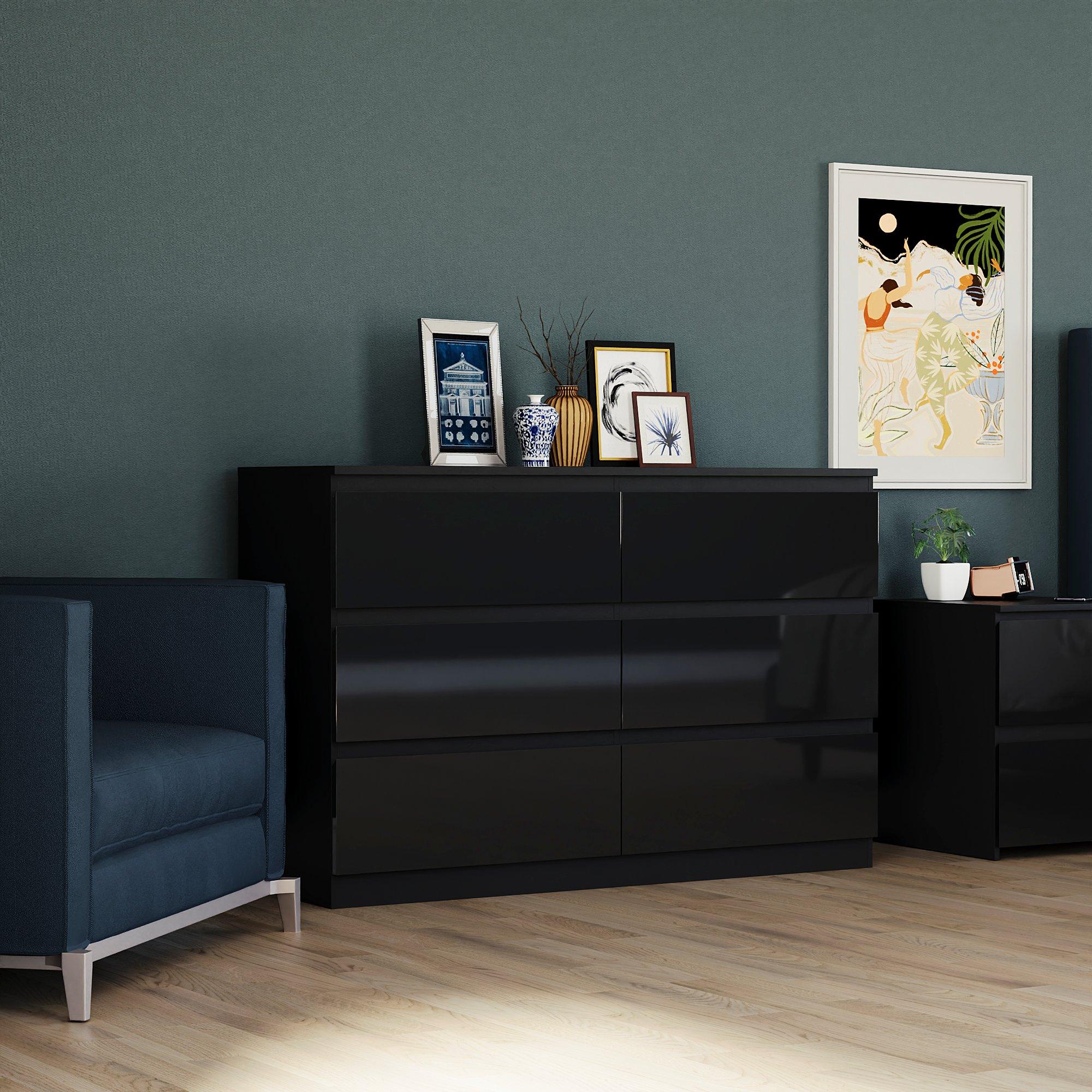 Introducing the Glinton 6-Drawer Chest of Drawers – a stylish and functional storage solution designed to elevate your bedroom or living space. Crafted from high-quality materials, this chest features a contemporary combination of high gloss drawer fronts and a matte carcass for a sleek, modern look.