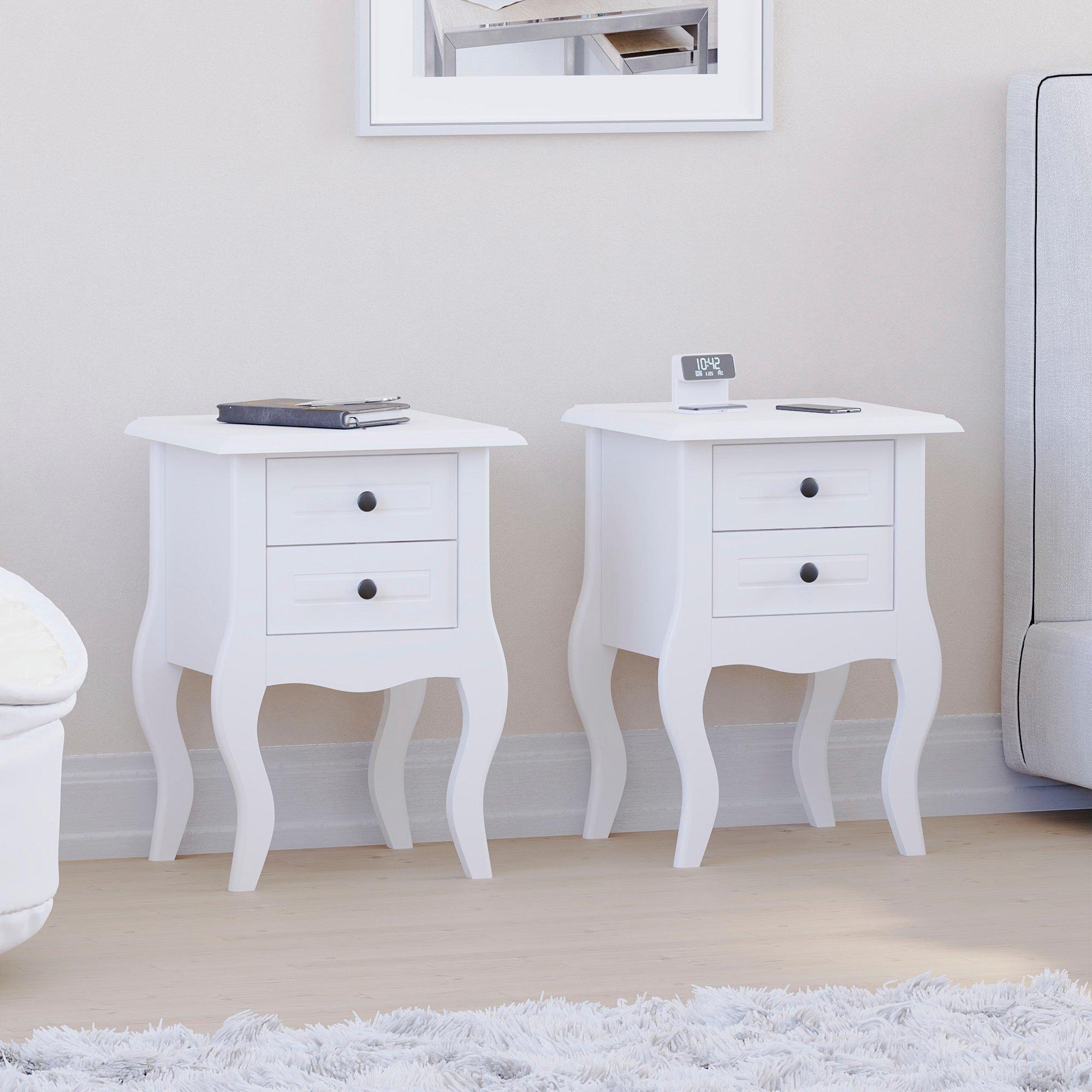 Introducing the Nishano 2 Drawer Bedside Cabinet Set of 2—a charming pairing that combines shabby chic elegance with modern functionality, designed to elevate the atmosphere of your bedroom. These delightful bedside cabinets exude vintage charm with their meticulously distressed finishes, while seamlessly blending rustic appeal with practical storage solutions. Adorned with brass knobs, each cabinet offers smooth access to the two spacious drawers, enhancing both form and function.