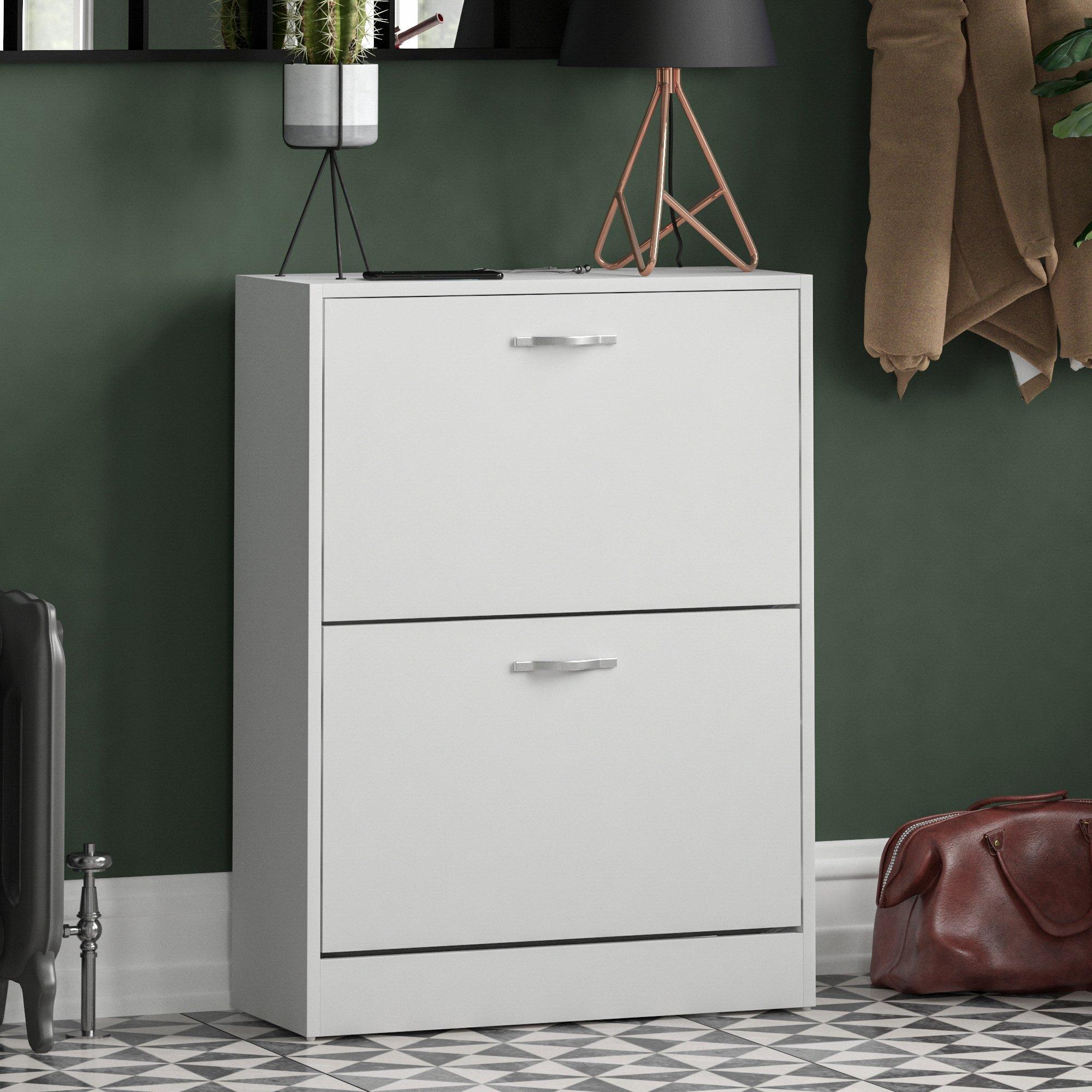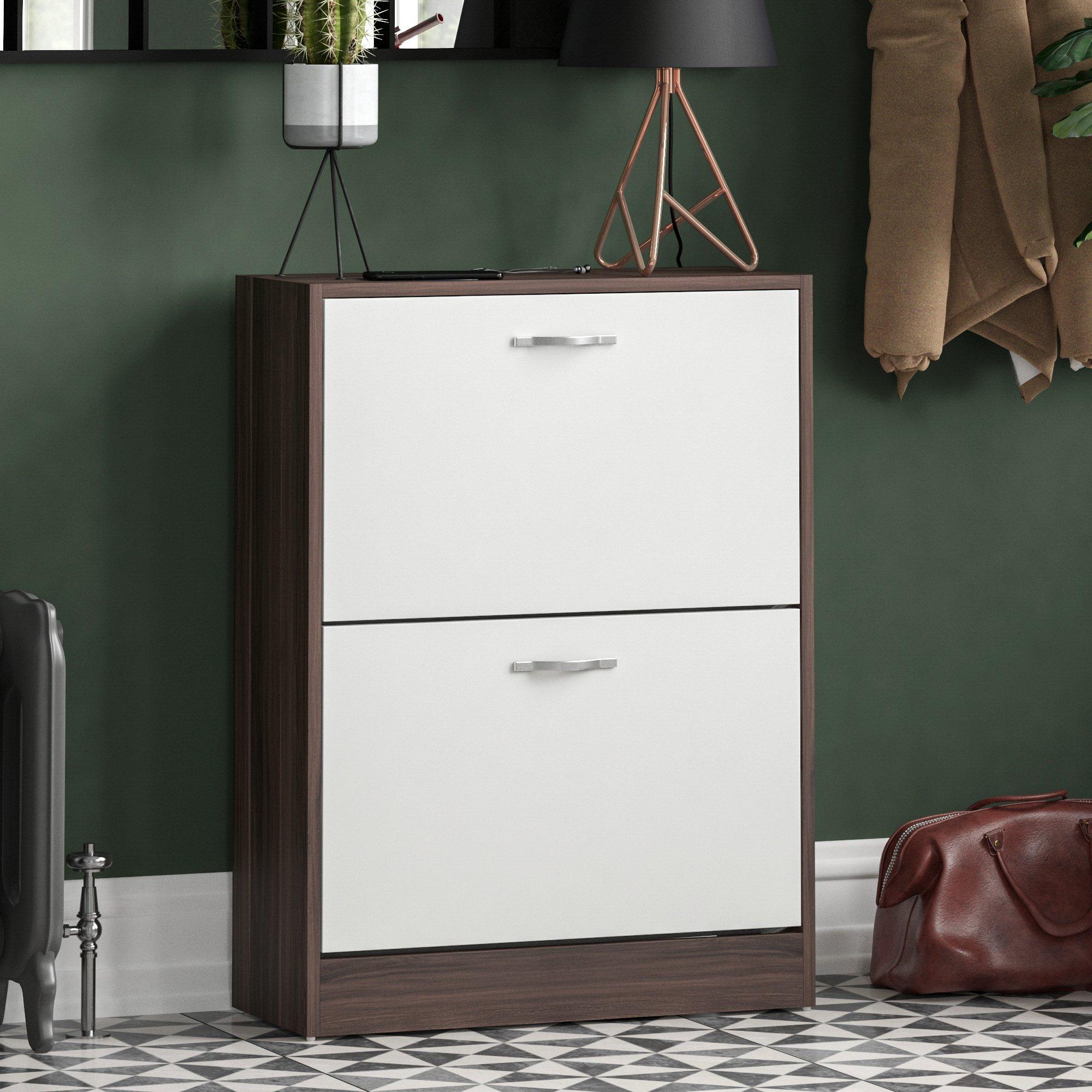 Introducing our sleek and functional 2-drawer shoe cabinet, the perfect solution to keep your shoe collection organized and tidy. Made from high-quality particle board, this cabinet is both durable and stylish, with a modern design that will complement any room decor.
