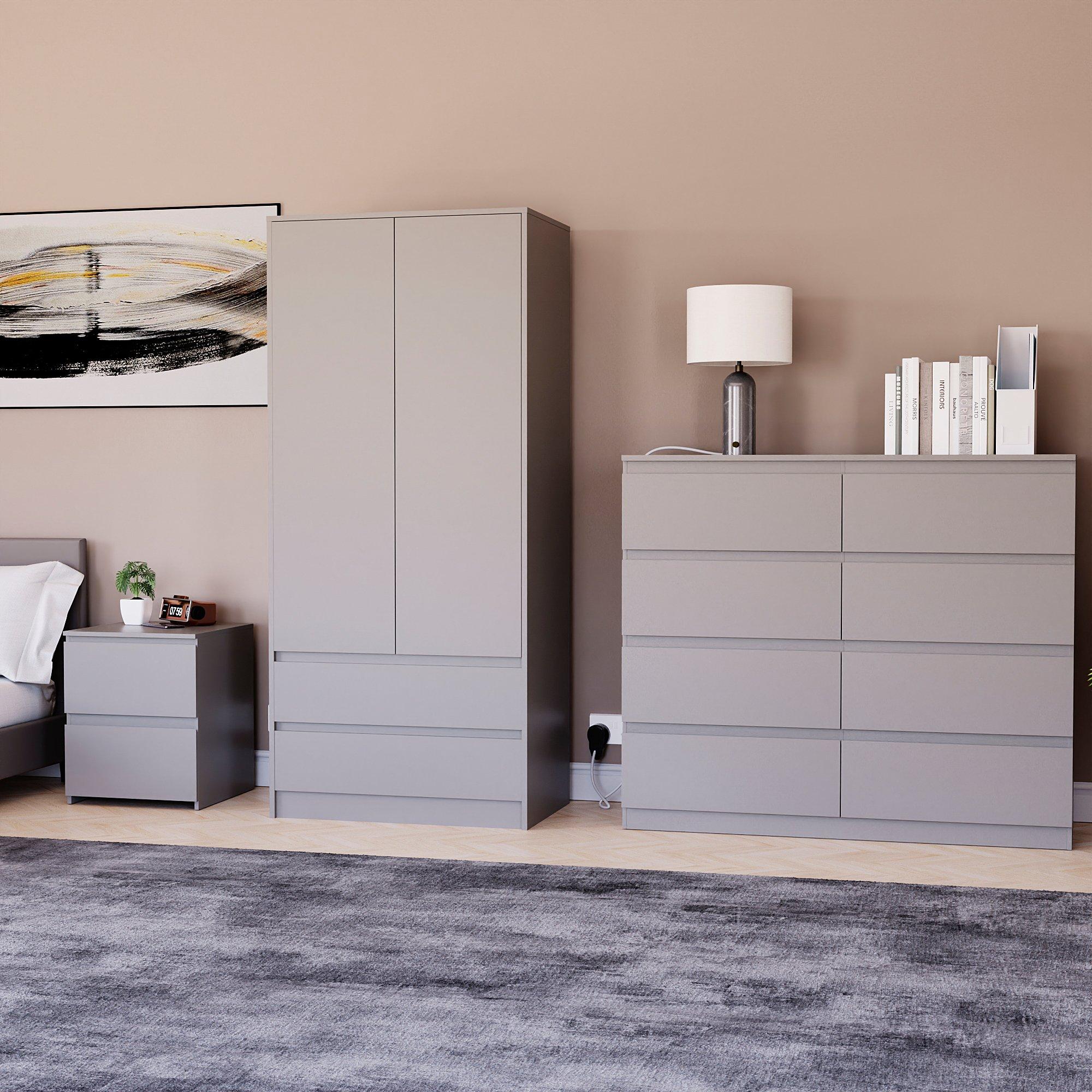Completing the set is the sleek Denver 2-Door Wardrobe with 2 Drawers, designed to elevate your bedroom with its minimalist aesthetic. Featuring a handle-free design and internal hanging rail, it ensures effortless organization for your clothes. Two spacious drawers at the bottom provide convenient storage for smaller items and accessories.