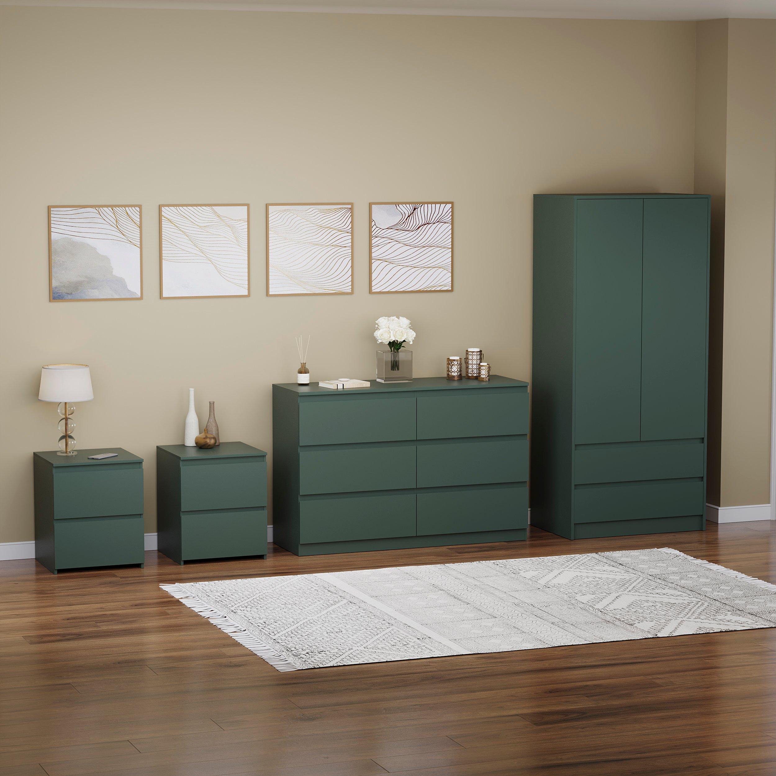 Completing the set is the sleek Denver 2-Door Wardrobe with 2 Drawers, designed to elevate your bedroom with its minimalist aesthetic. Featuring a handle-free design and internal hanging rail, it ensures effortless organization for your clothes. Two spacious drawers at the bottom provide convenient storage for smaller items and accessories.