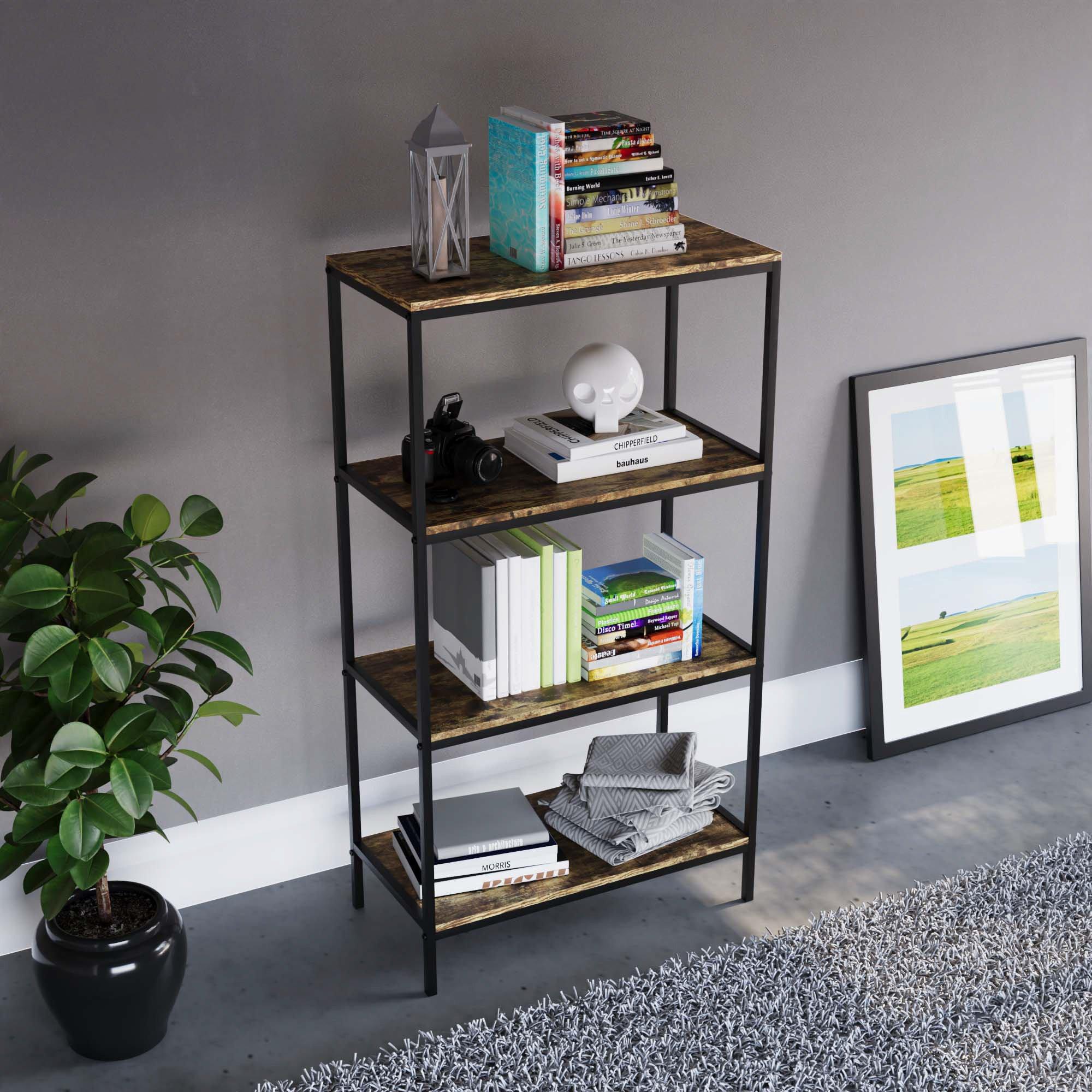 Introducing our Industrial-Style Brooklyn 4-Tier Bookcase – a striking blend of rugged charm and modern functionality. This bookcase captures the essence of industrial design, adding a contemporary touch to your living room, home office, or any space in need of stylish organization.