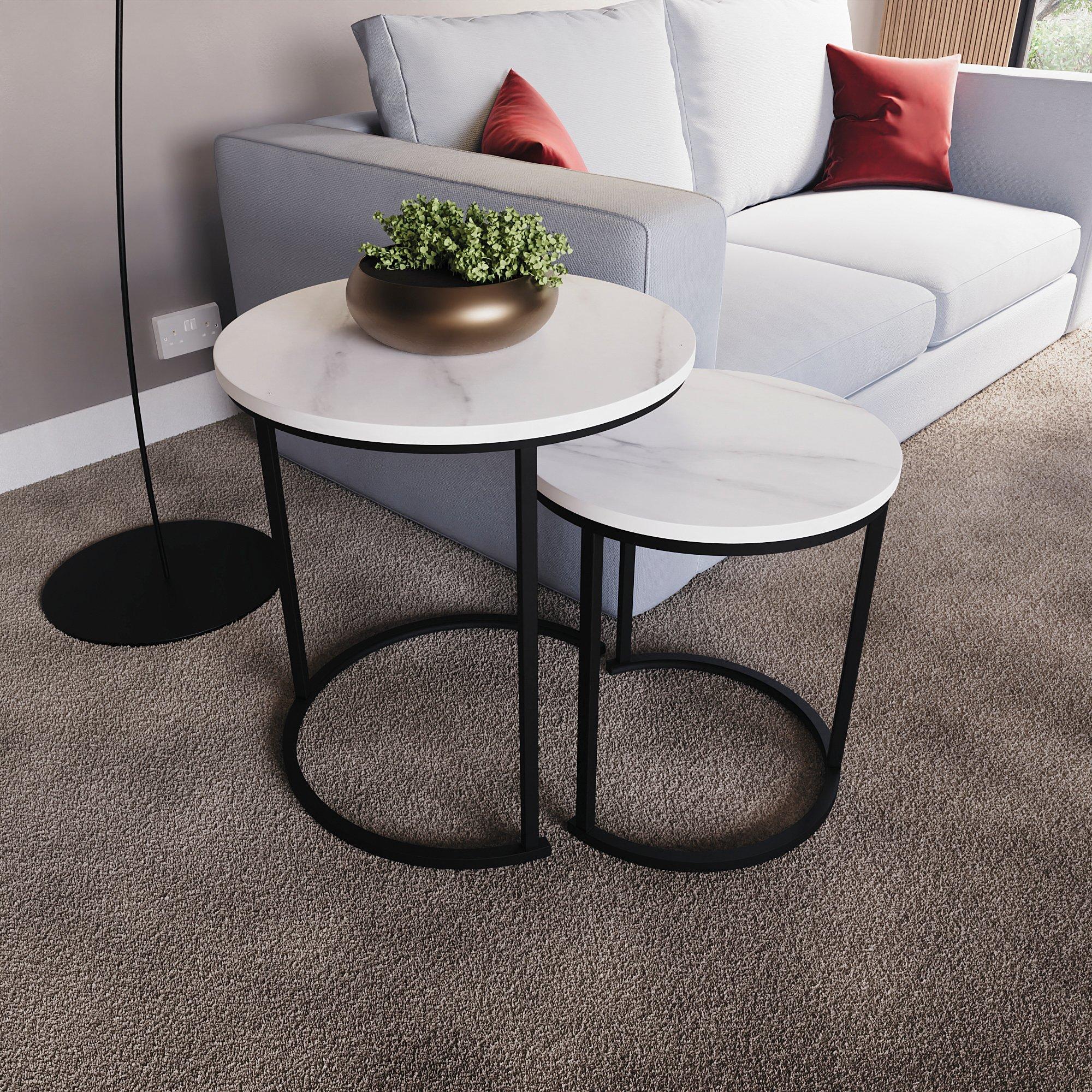 Each table in the set is crafted with precision, boasting sturdy metal legs that provide a solid foundation and a sleek finish that enhances the edgy, industrial design. This nest of tables adapts effortlessly to various design schemes, making it the perfect addition to urban lofts, eclectic interiors, and modern living spaces.