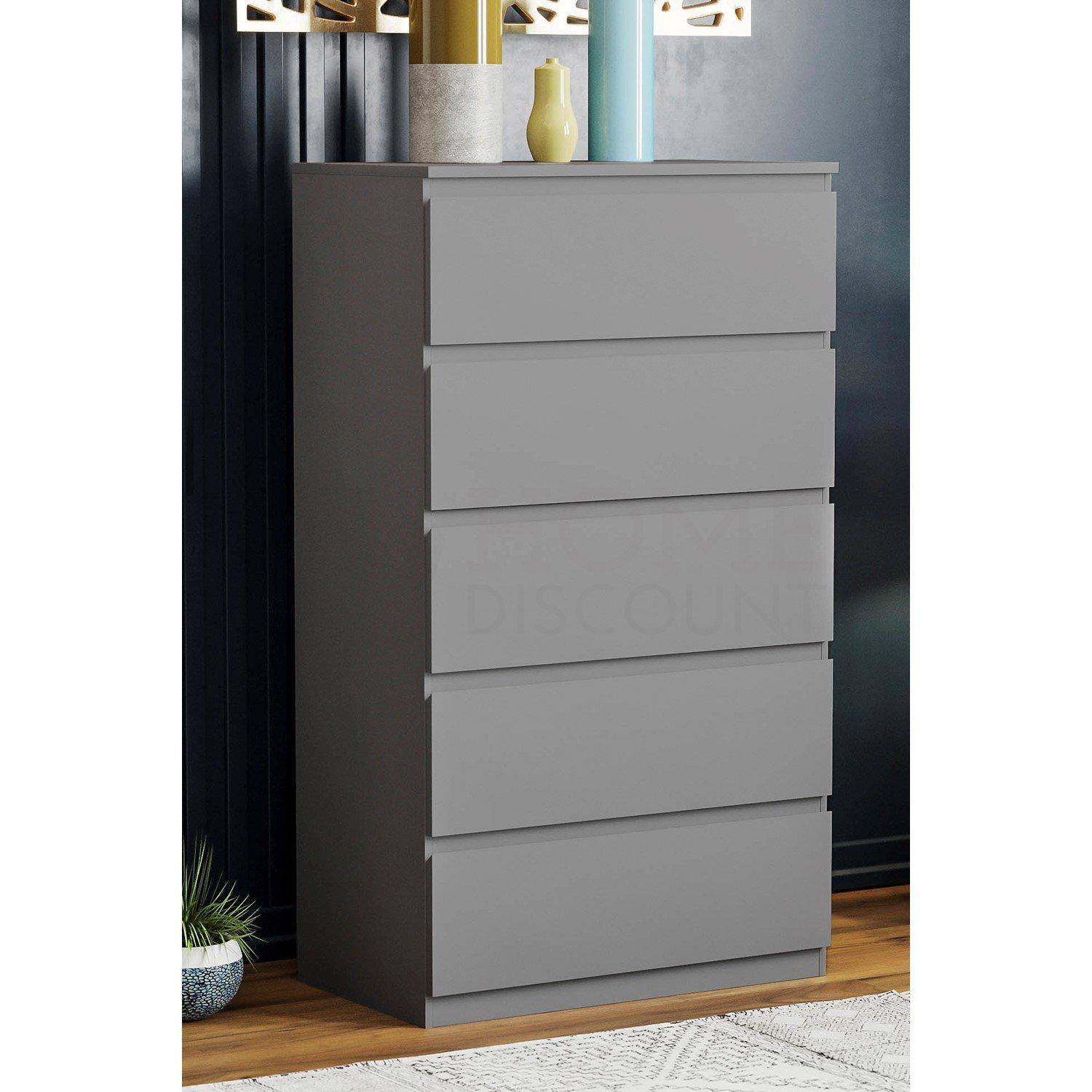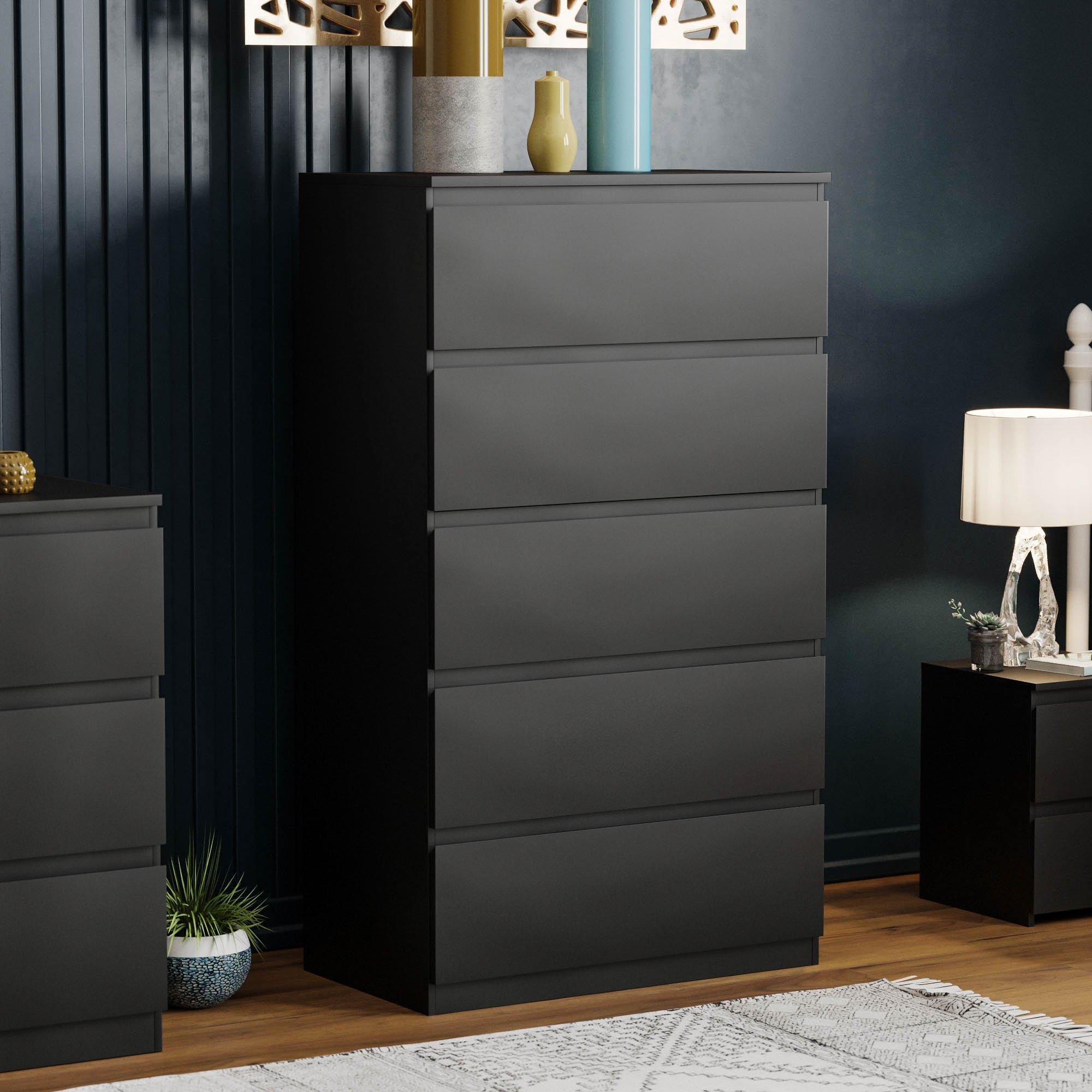 Featuring a handle-free design, the drawers smoothly glide open and close with ease, making it a breeze to access your clothes or other belongings. With five spacious drawers, this chest provides ample storage space for all your essentials.