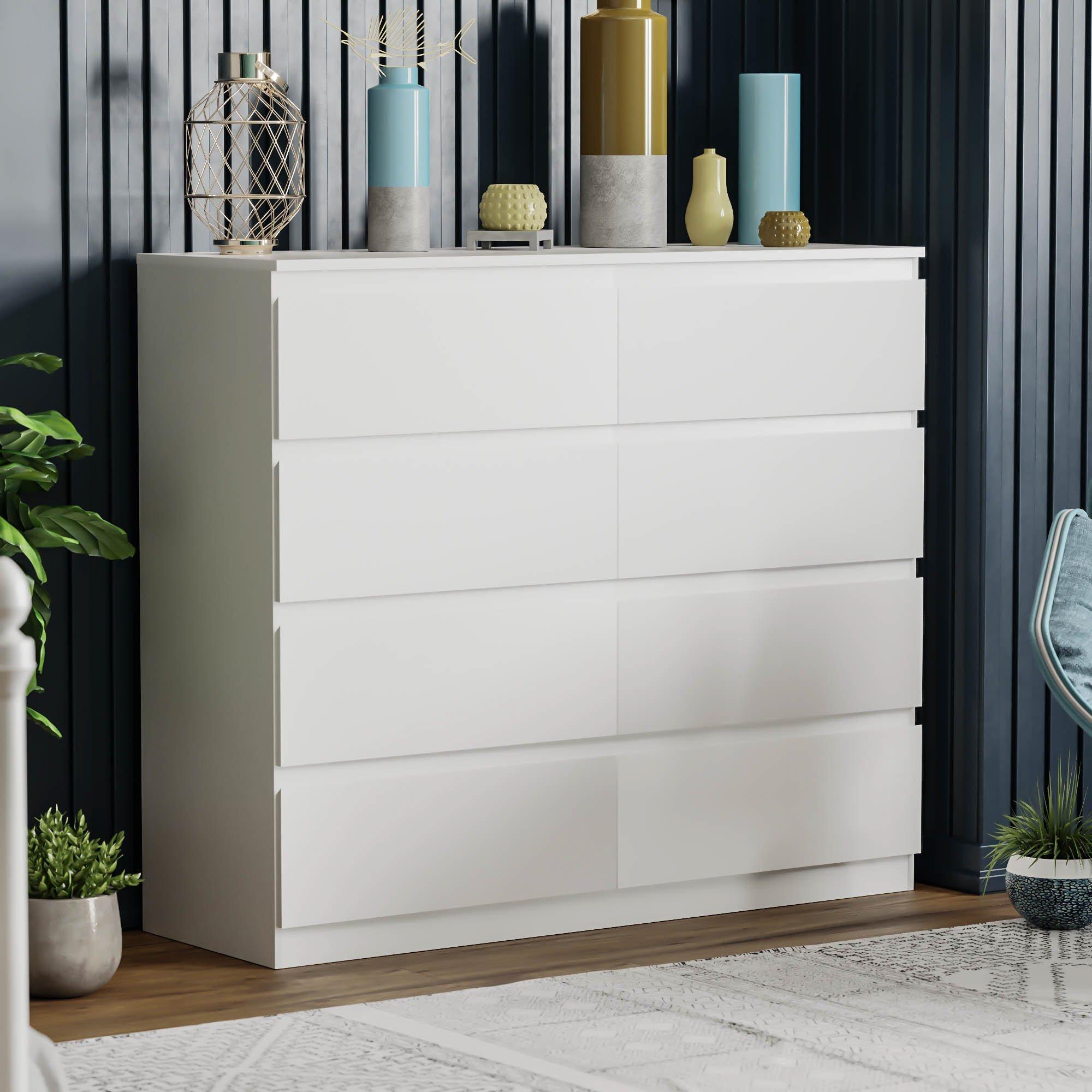 Introducing our Denver 8-drawer Chest of Drawers, the perfect addition to any bedroom or living space! Made from high-quality Chipboard with a white finish, this chest of drawers is not only durable and long-lasting but also adds a touch of elegance to any interior decor.