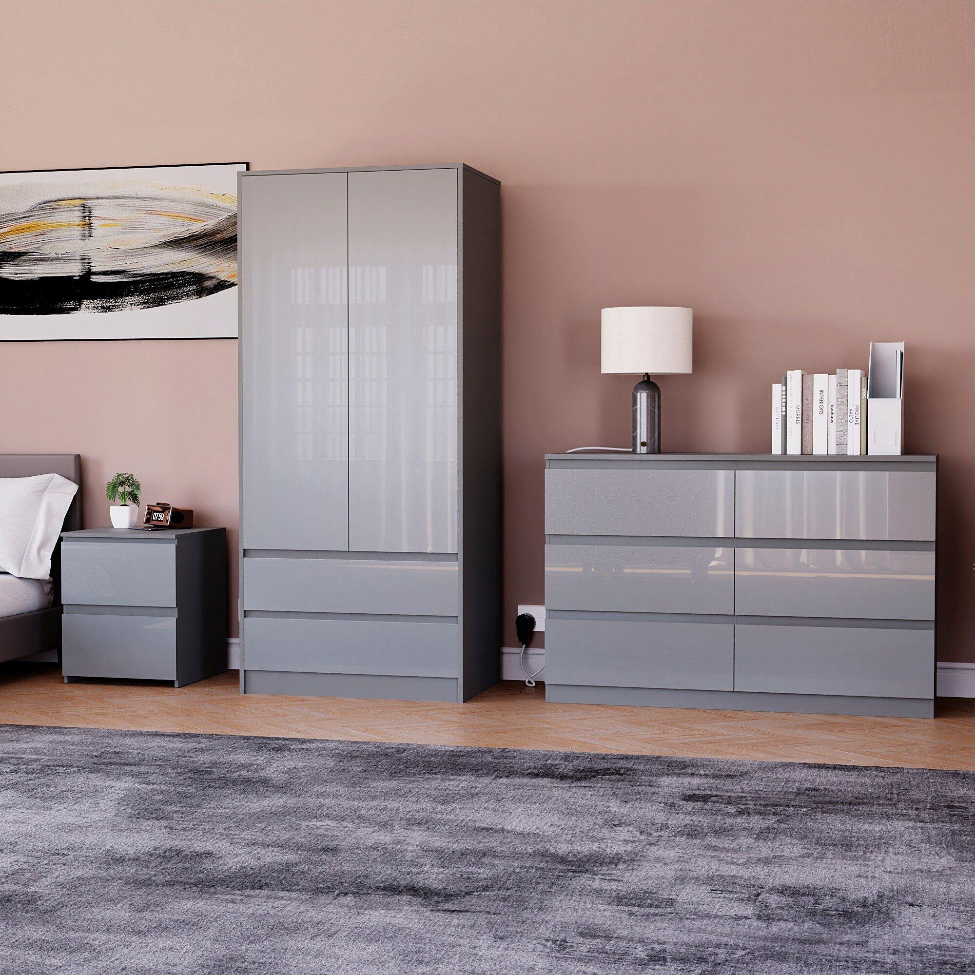 Introducing the Glinton Bedroom 3-Piece Furniture Collection – a perfect blend of modern design and practical storage. Crafted from high-quality MDF and chipboard with a sleek high-gloss finish, this collection adds both durability and contemporary elegance to your space.