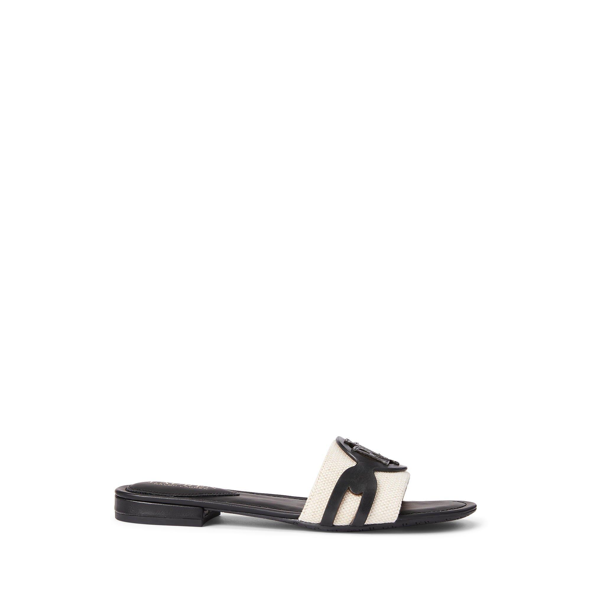 Crafted from supple leather and durable canvas the Alegra Sandal is stylish and versatile style with all of the unique details and quality expected from Lauren Ralph Lauren. The slight heel is 15mm and features a padded insole for a comfortable fit. The slip on, open toe slider also features a LRL leather logo at the front for instant brand recognition. Fabric: Canvas: Cotton, linen. Upper: Leather. Outsole: Leather. Fits small. We recommend you take one size bigger than your normal size.