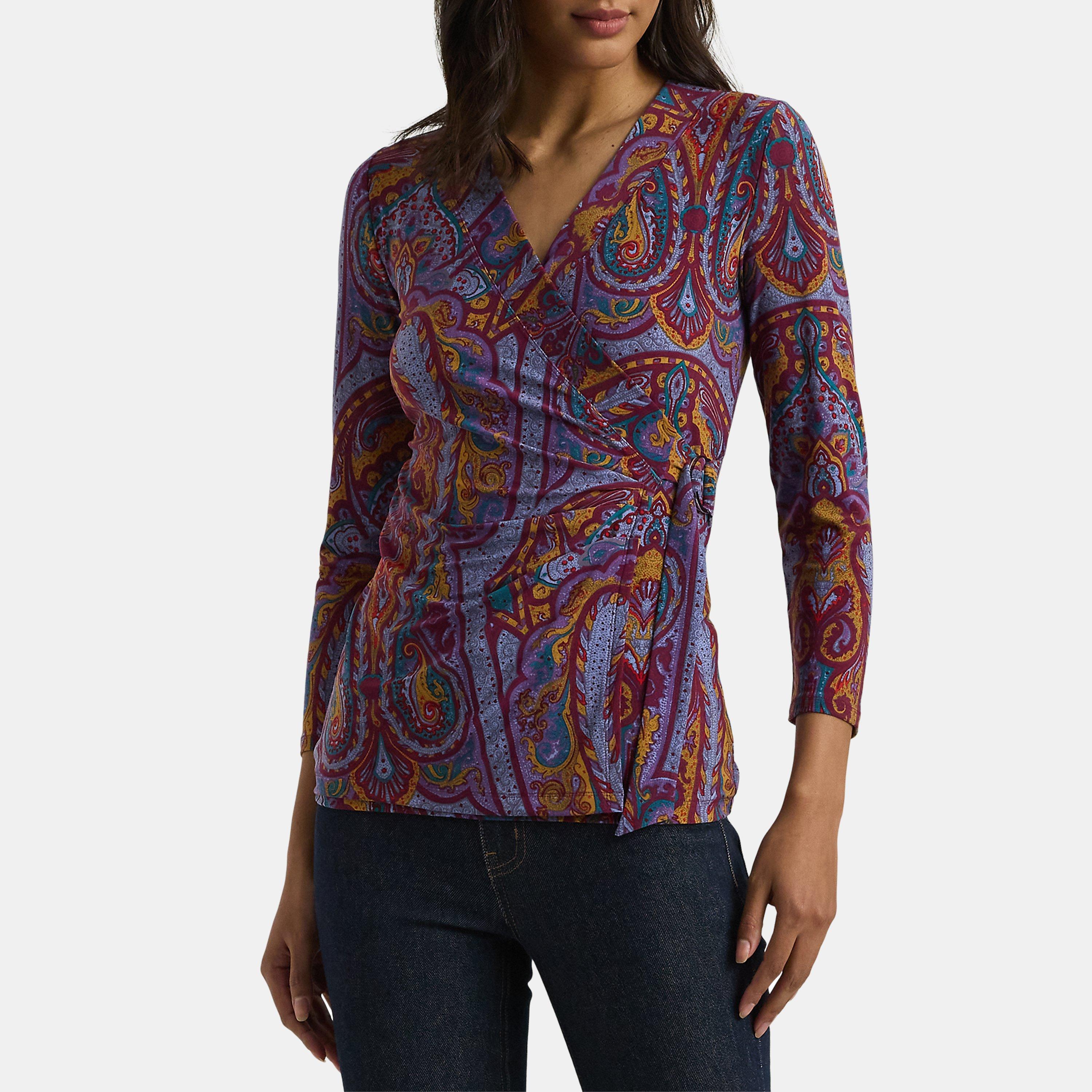 Step into the world of Lauren by Ralph Lauren and discover the epitome of accessible luxury with the Jainab Wrap Top. Crafted from a blend of polyester and elastane, this top is designed for both style and comfort. With three-quarter-length sleeves, you can wear it comfortably from season to season. The crossed v-neckline and wrap-effect yoke with ties to tie on the left waist captivate attention, while the subtle ruffles on the left side of the waist add a touch of flair. Featuring a metal D-ring, engraved with the LRL monogram, providing a luxurious detail that pays tribute to the brand's rich heritage.