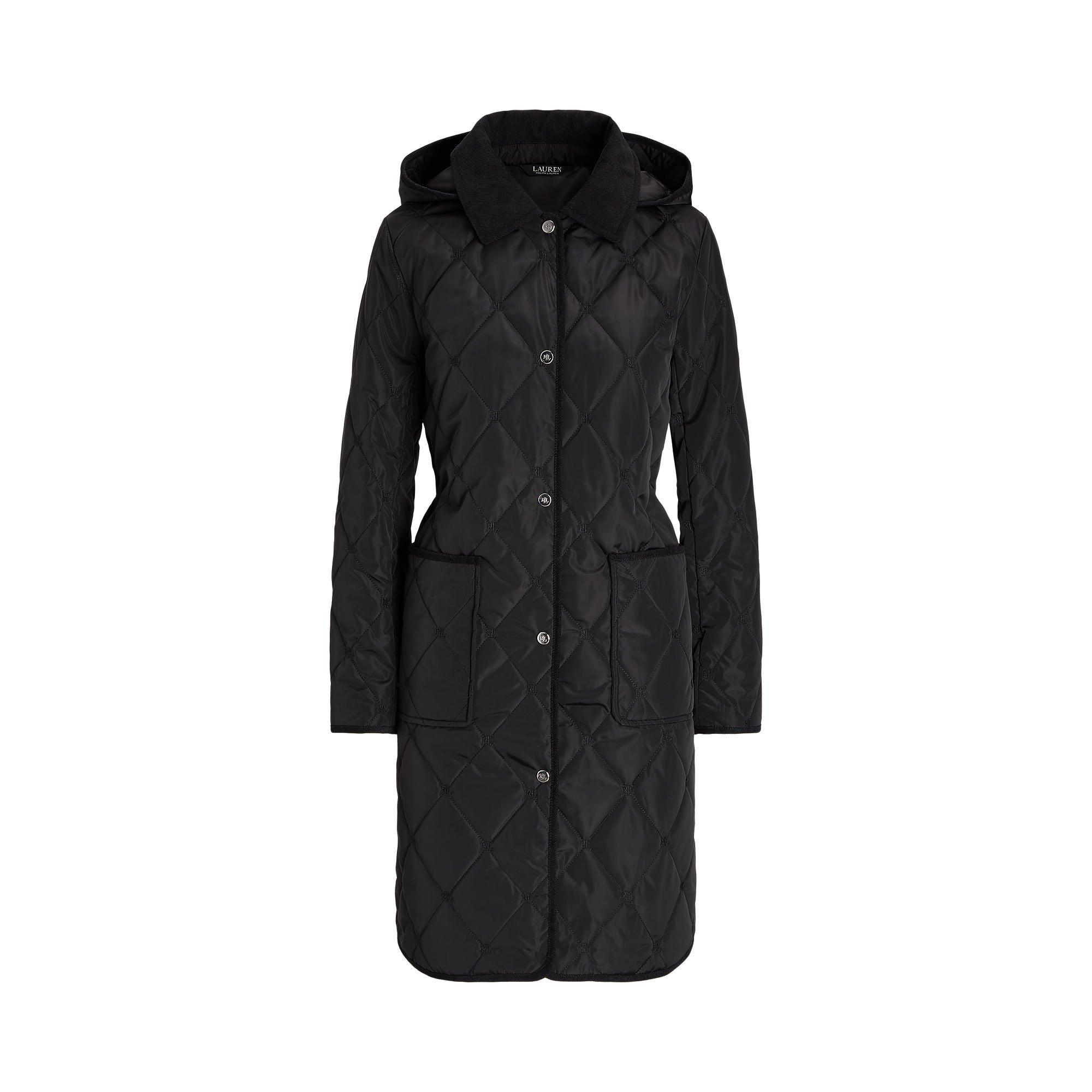 Lauren by Ralph Lauren's Corduroy Trim Quilted Jacket offers classic style with practical warmth. The LRL embroidered motif accents this short puffer, while the corduroy collar adds a contrast against the quilted texture. The design features a detachable hood for adaptable wear in changing conditions.