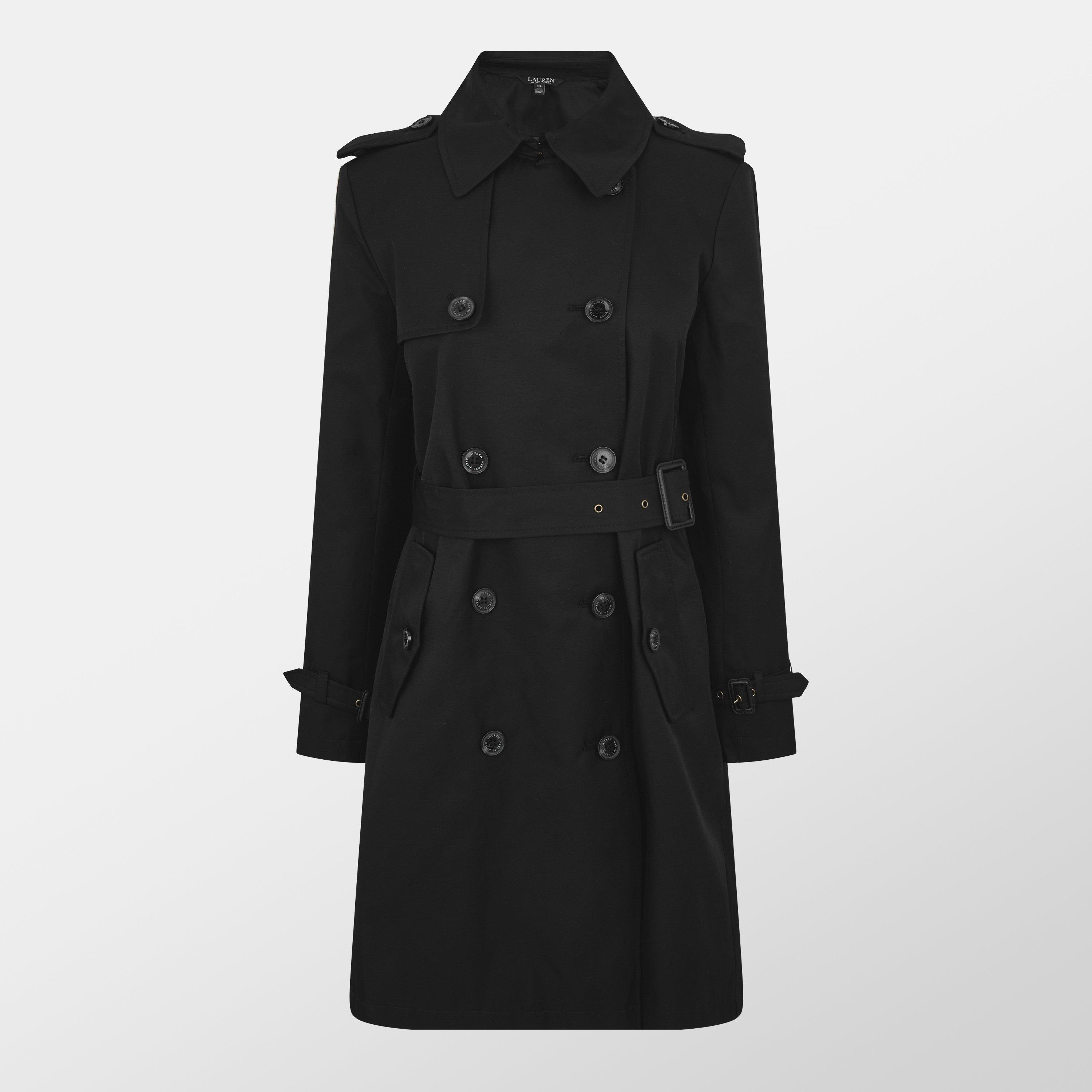Lauren by Ralph Lauren Double Breasted Belted Trench Coat brings classic style to your outerwear collection. This knee-length design features logo-engraved horn-effect buttons and a removable belt that cinches the waist for a tailored look. Classic details like shoulder epaulettes and buckled cuffs deliver authentic trench styling.