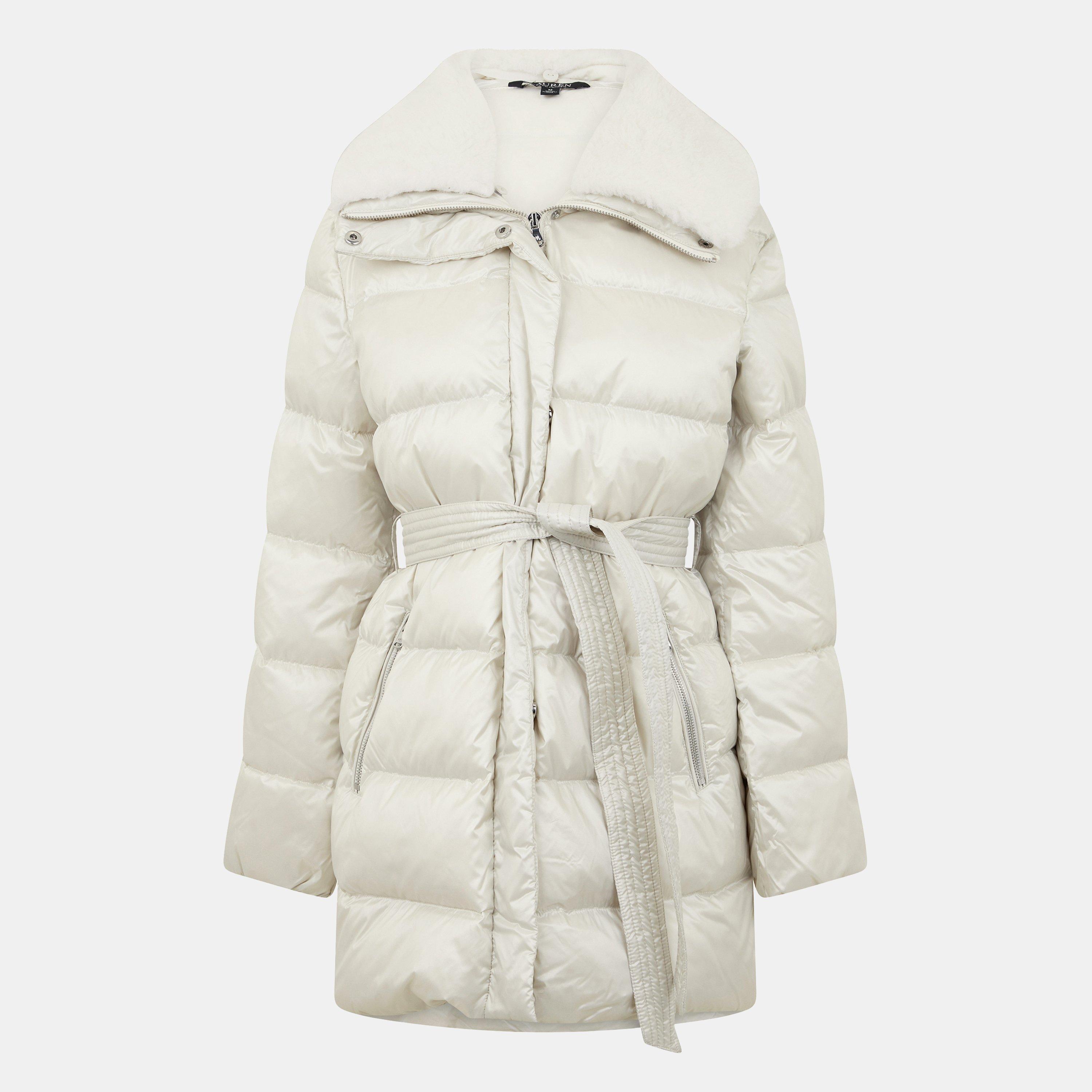 Lauren by Ralph Lauren Women's Faux Shearling Trim Belted Wind Resistant Duck Down Short Puffer Jacket