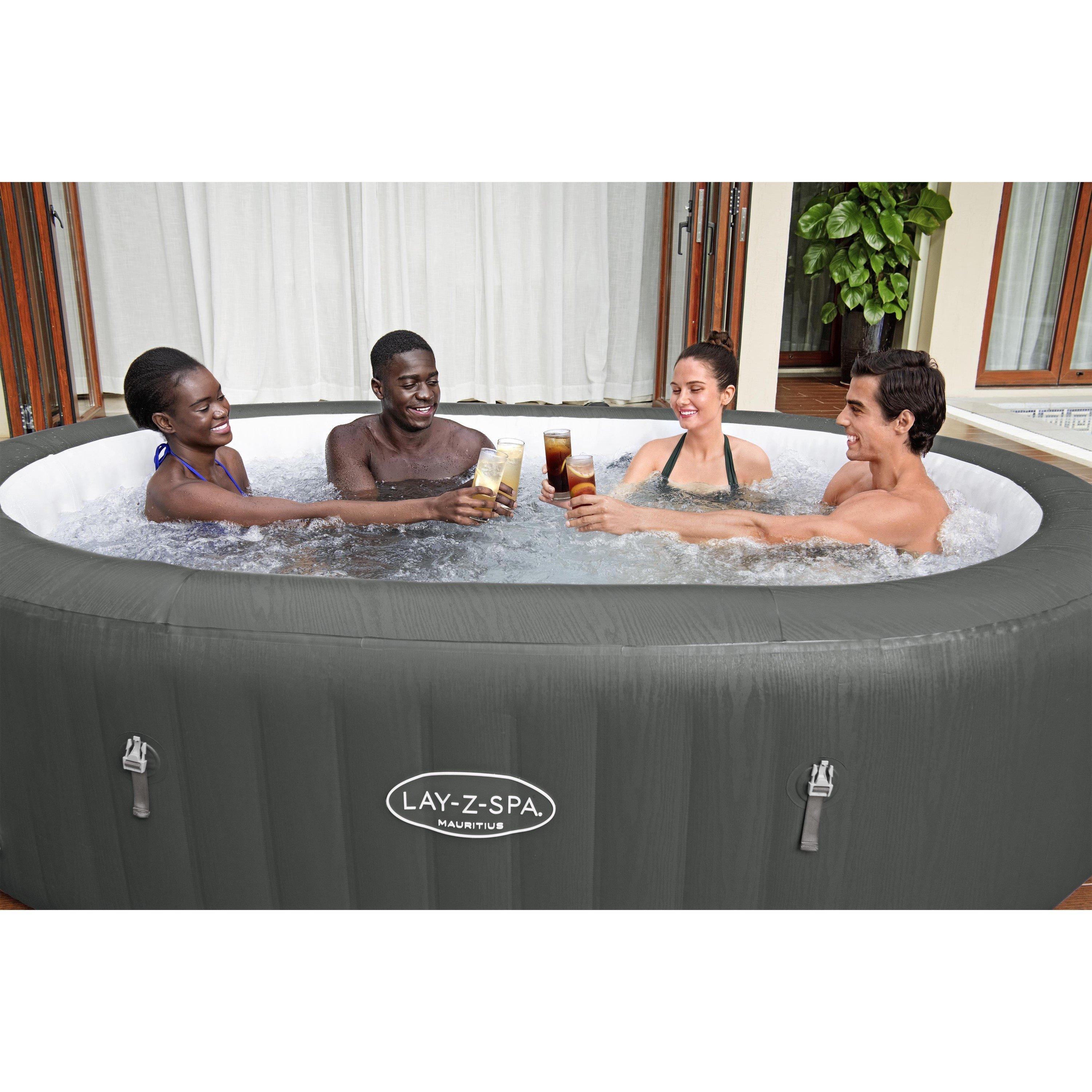 Relax and unwind at home and enjoy positive benefits to health and wellbeing with the Lay-Z-Spa Mauritius Smart AirJet™, a 7-person oval-shaped inflatable hot tub with WiFi.