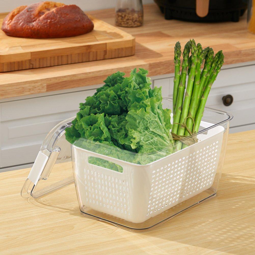 - The drainage feature keeps food dry, extending its shelf life.