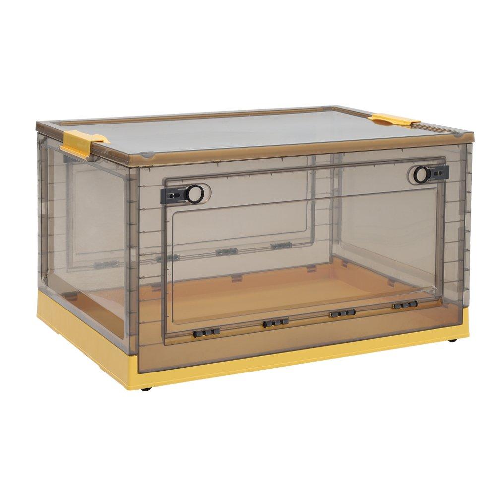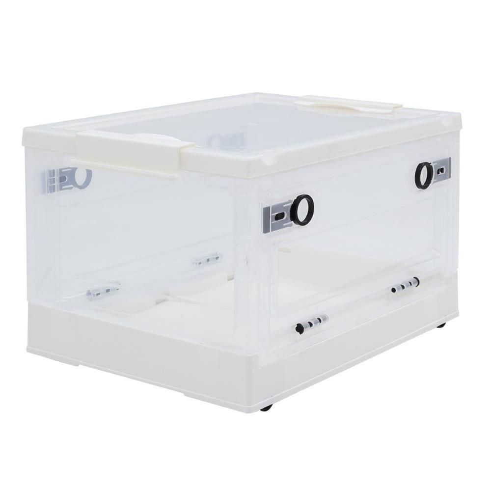 Keep your home or office organised and free from clutter with this versatile storage box. Made from sturdy, transparent plastic, it allows you to see contents at a glance, making it easy to locate items quickly. The box features a lid with secure buckles to keep belongings safe and dust-free, while the integrated handle and wheels allow for effortless mobility. With openings on three sides and a stackable design, it provides flexible storage options and helps save space efficiently.
