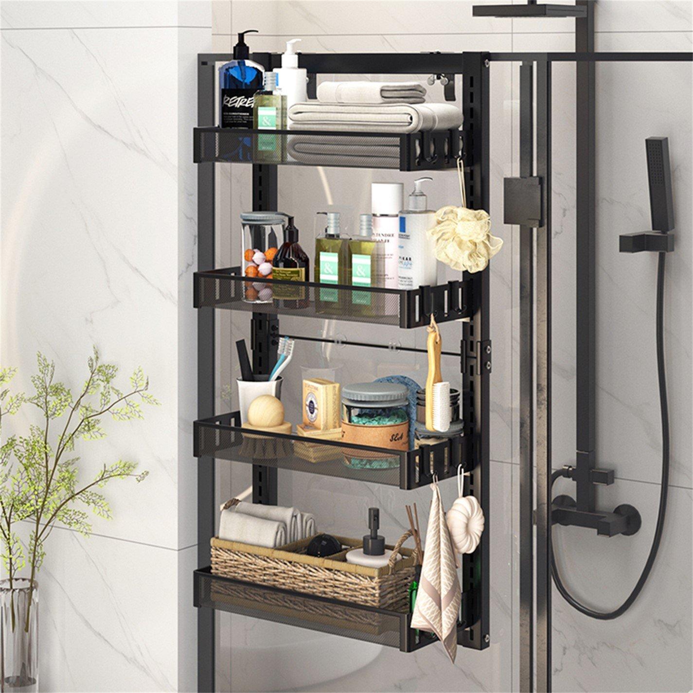 The Over-the-Door Adjustable Shower Caddy Shelf helps prevent tripping in the shower by clearing off the floor and storing all your bathroom essentials. Made for showers with doors rather than curtains, this shower caddy hooks over the top of shower doors to keep items at hand but out of the way. The caddy has four adjustable basket-style shelves and eight removable hooks for meeting your storage needs. Made of durable metal, you are sure to get plenty of use out of this caddy.