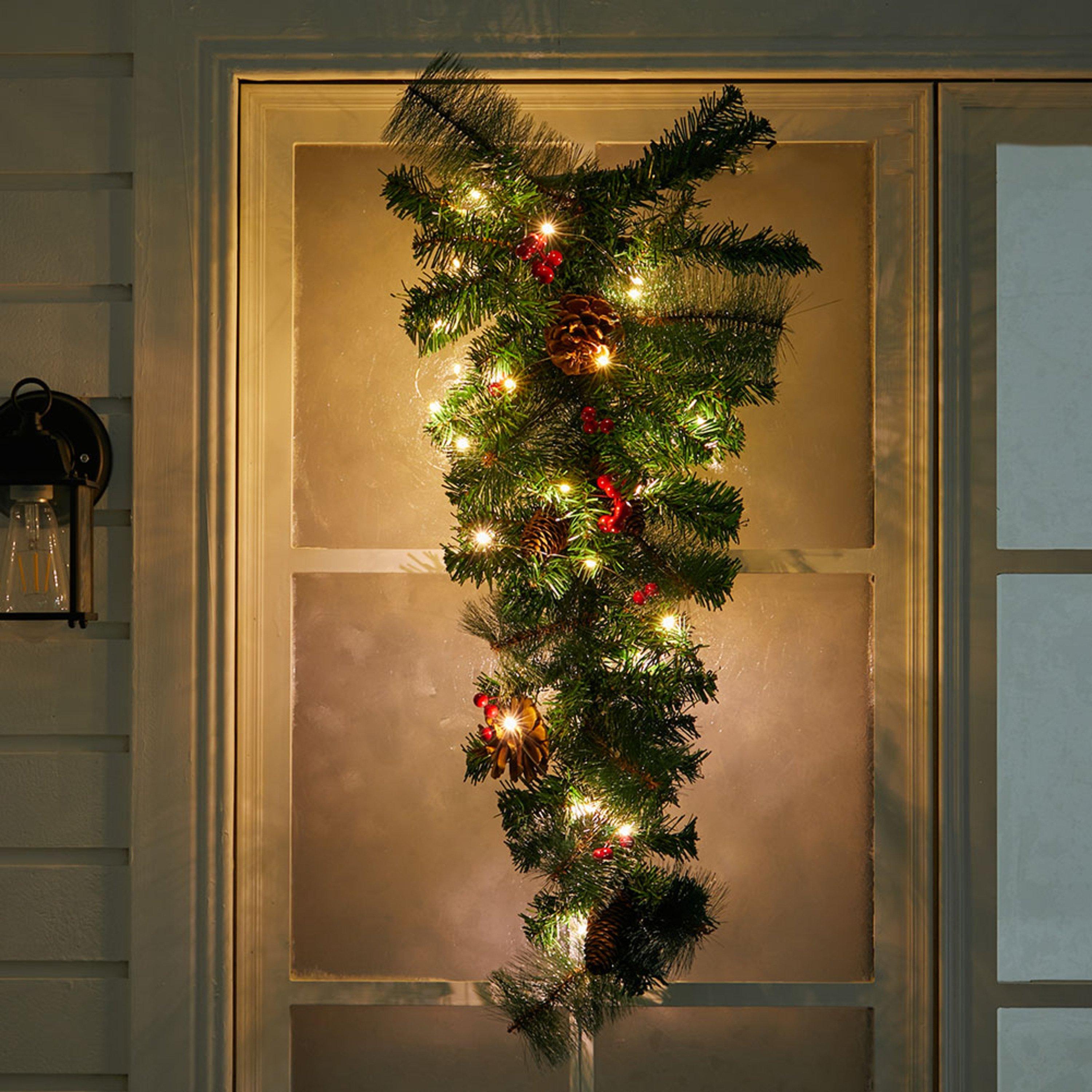 /Home/Christmas/Trees and Decorations/Christmas Ornaments & Figurines/Pine Needle Cone Snow Red Berry Swag