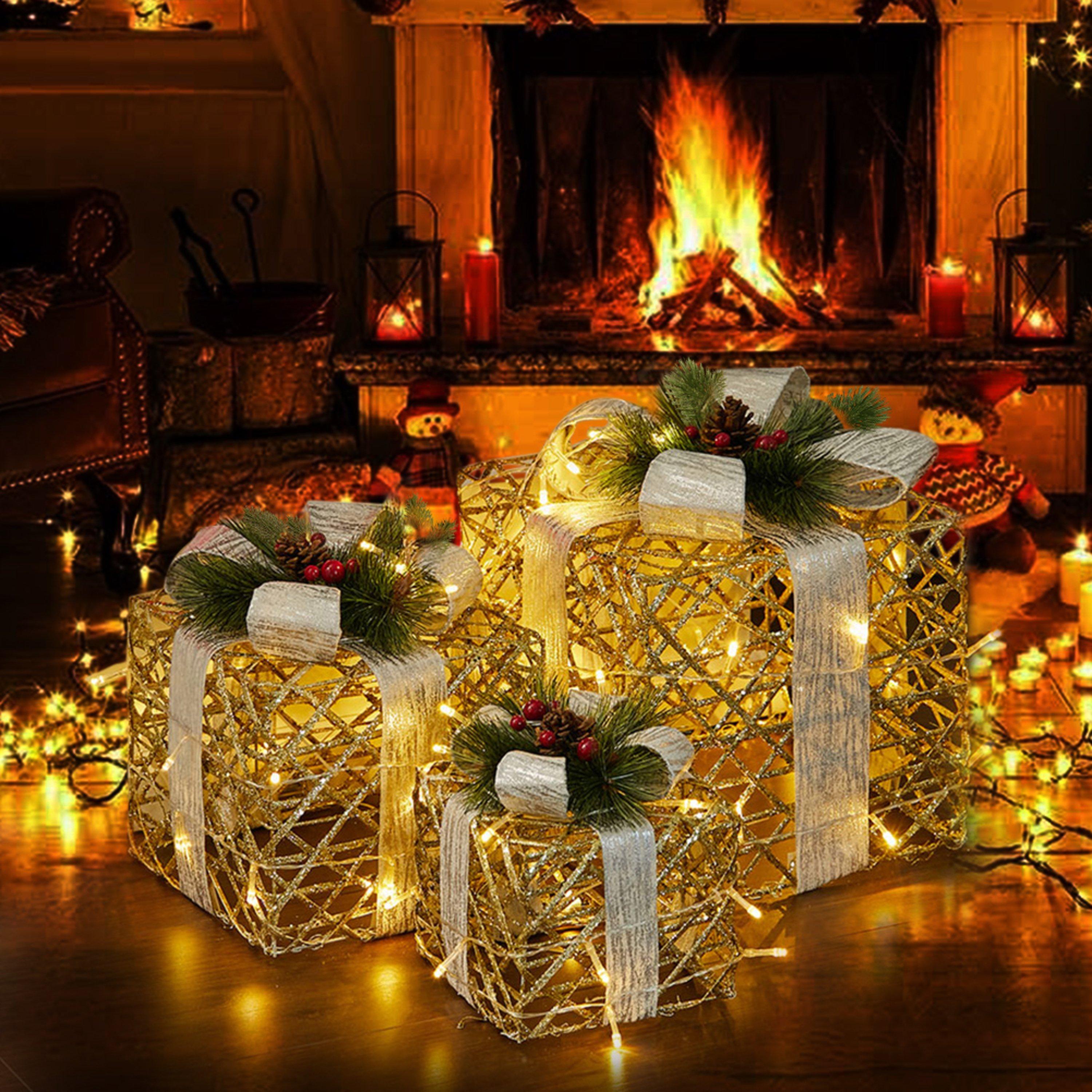 /Home/Christmas/Trees and Decorations/Baubles & Tree Decorations/Set of Three Woven Christmas Decorative Gift Boxes