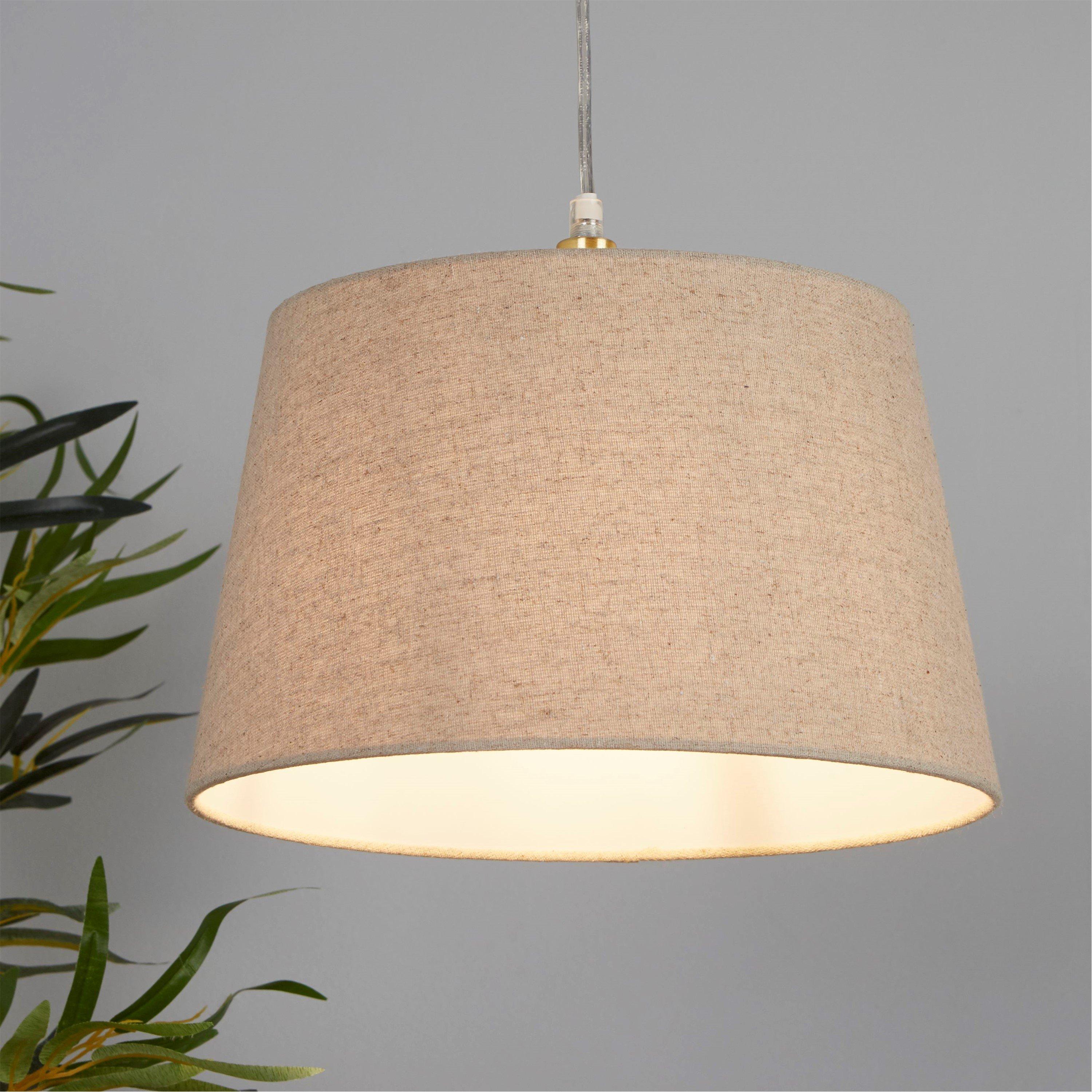 This natural coloured shade will work with many d,cor styles, adding the perfect finishing touch to any bedroom, living room or hallway. The 30cm tapered shape is designed to be used as a table lamp, floor lamp or pendant. The Finn lampshade will give the perfect homely glow to any room.