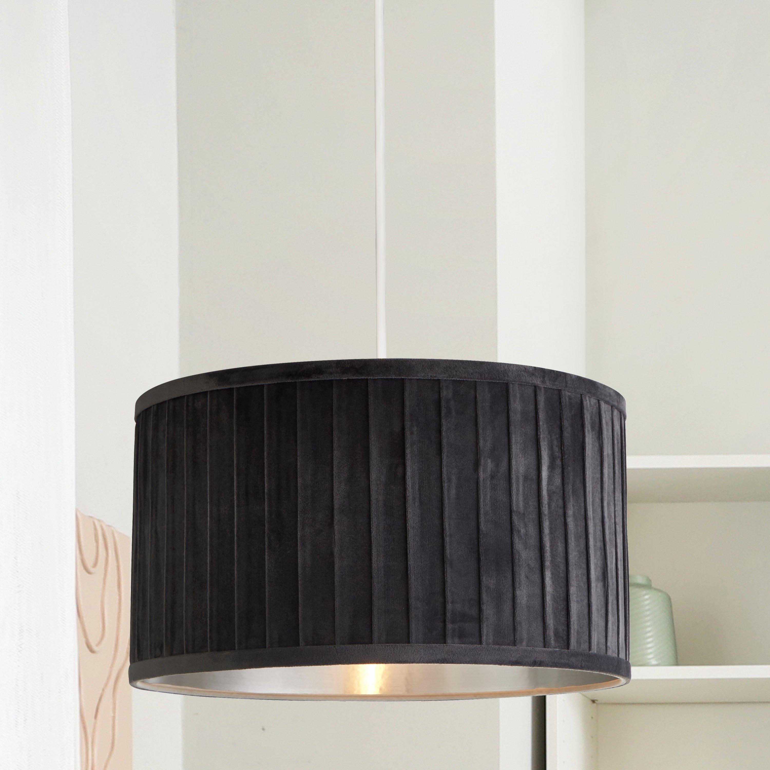 /Home/Home & Furniture/Home Accessories/Lighting/Lamp Shades/Pleated Velvet Grey Shade With Metallic Silver Inn