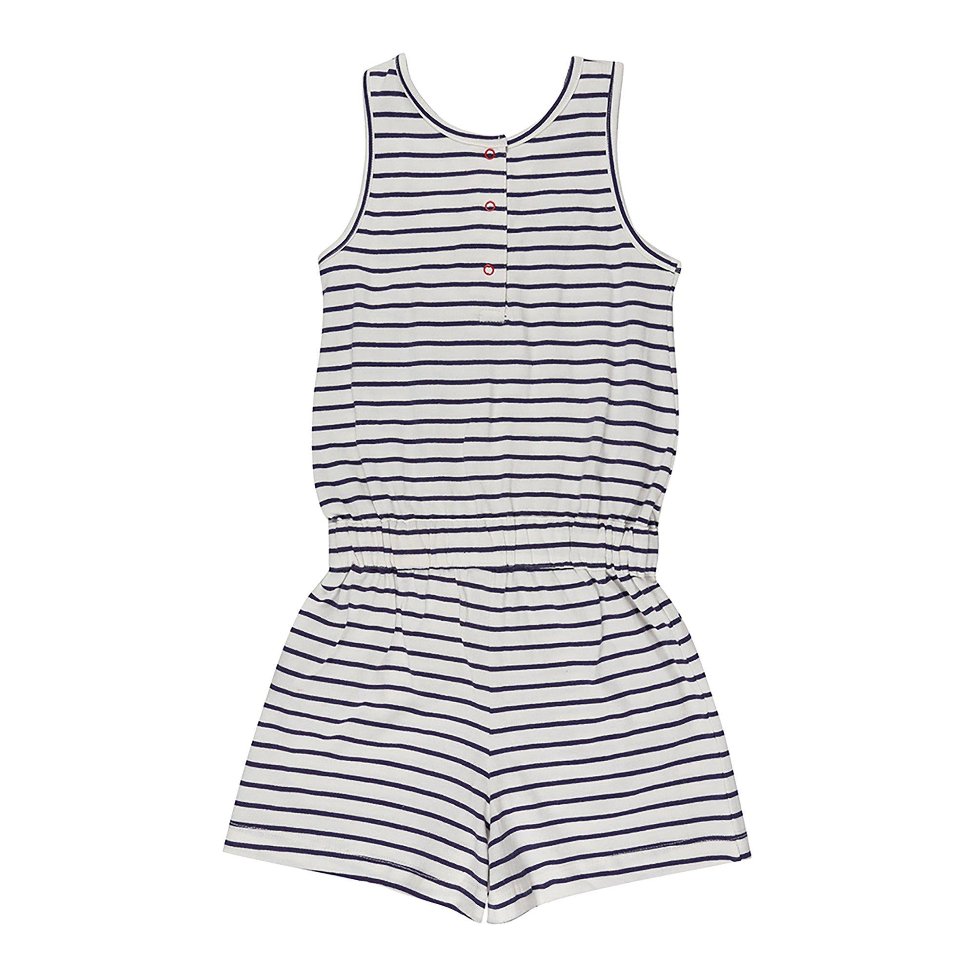 Lilly and Sid's Playsuit offers classic design with functional comfort for active children. The stripe pattern creates an enduring aesthetic while the integrated jumpsuit design offers streamlined wearability and unrestricted movement.