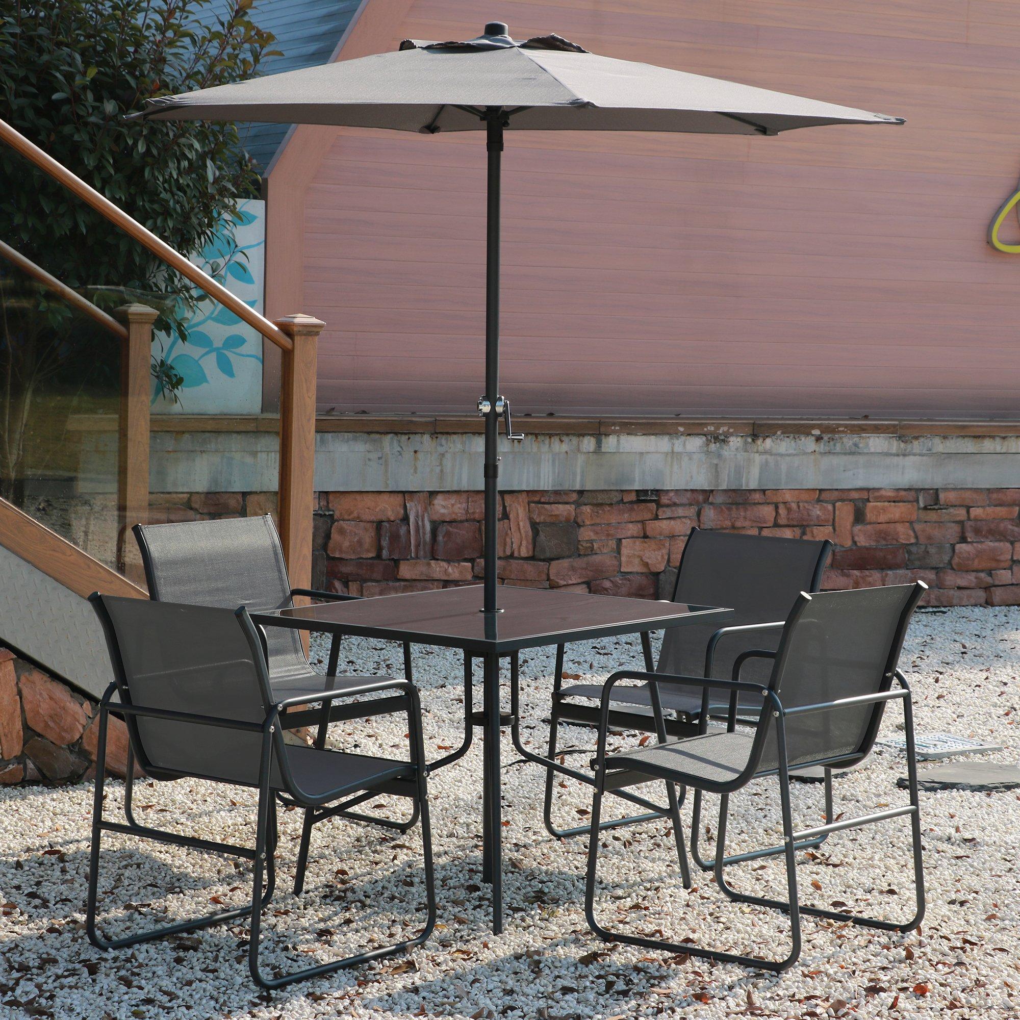 - Complete outdoor set with table, 4 chairs, parasol