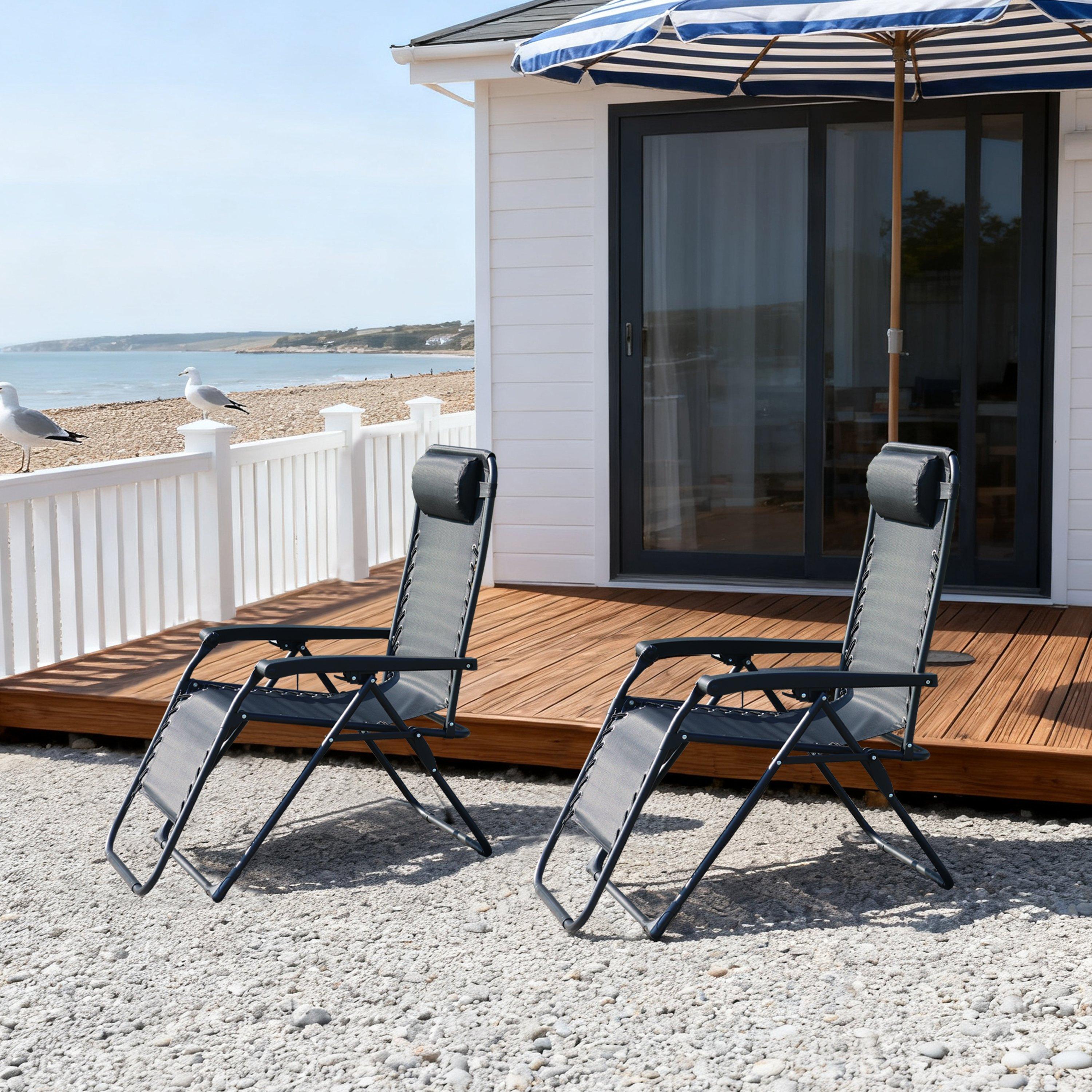 Experience ultimate comfort and relaxation with this set of two reclining lounge chairs. Designed with a sturdy steel frame and breathable mesh fabric, these chairs provide excellent support and durability for outdoor use. The adjustable reclining mechanism allows you to find your perfect position, while the padded headrest offers extra comfort for your neck and head.