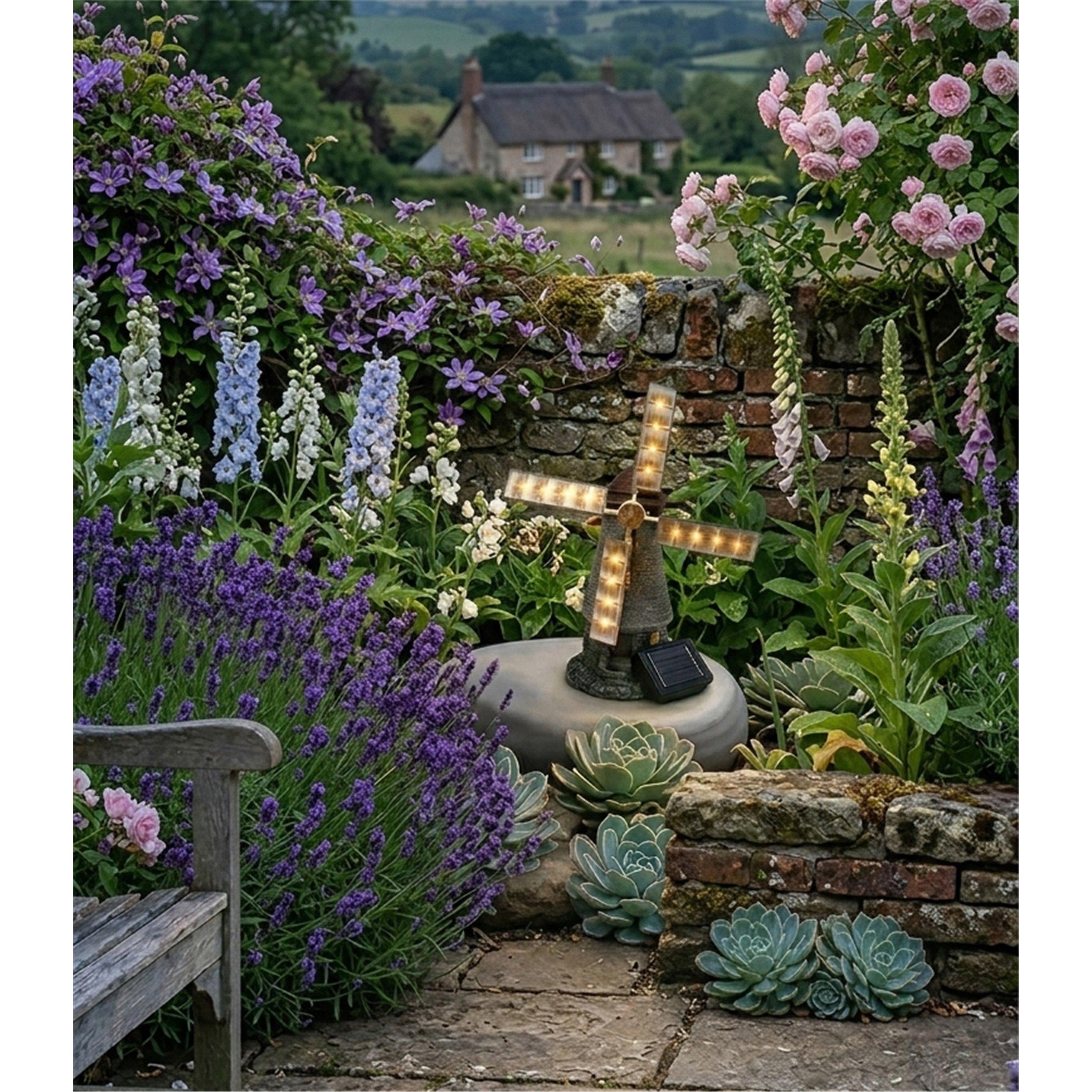 This cute little Tower Windmill with Solar Spinner is ideal to decorate your outdoor garden. The solar energy charges it through the day. LED Bulb Rating: 0.2w for each LED Batteries: 1.2V-AA 6oOmAh Ni-MH rechargeable battery Number of bulbs: 16 X LEDs