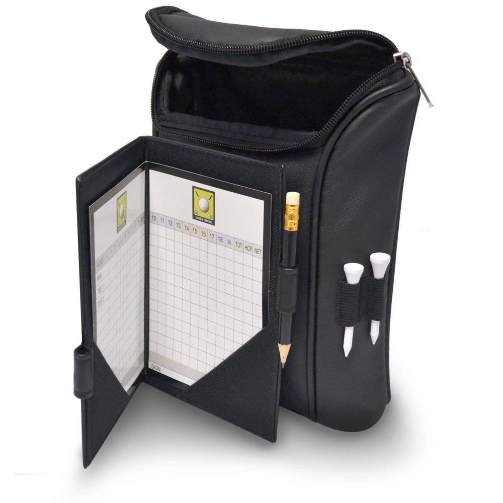 Quality faux leather look with a stylish design Scorecard upholstered sleeve Pencil and 4 tees included