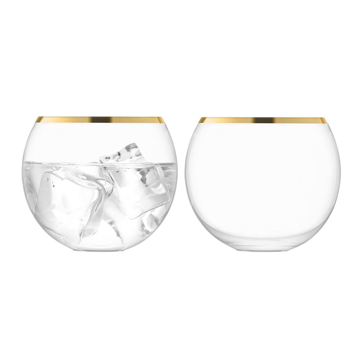 Bring understated opulence to the table with this set of two Luca tumblers from LSA International. Handmade from mouth-blown glass, the Luca range is characterised by its rounded shape and contemporary silhouette and is finished with a metallic gold band painted by hand. Perfect for water or juice, pair with other glassware from the range to create a matching set.