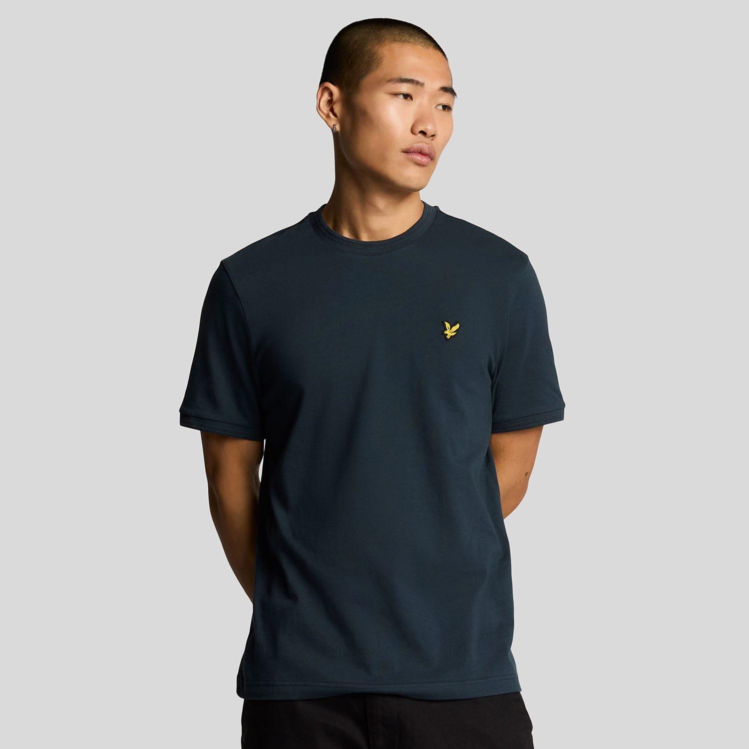 Crew neck design with fine ribbed collar. Short sleeves. Finished with tonal tipped stitching at the cuffs and neckline. Rib knit cuffs. Embroidered Golden Eagle Logo to chest.