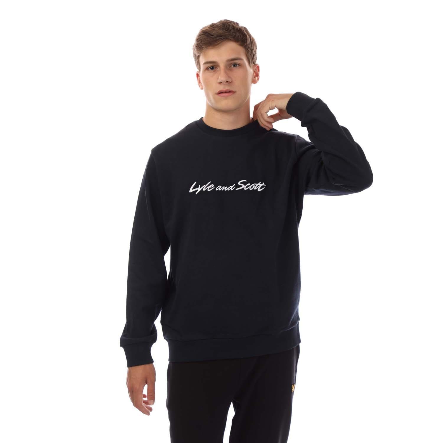 Mens Lyle And Scott Script Sweatshirt in navy-white.
