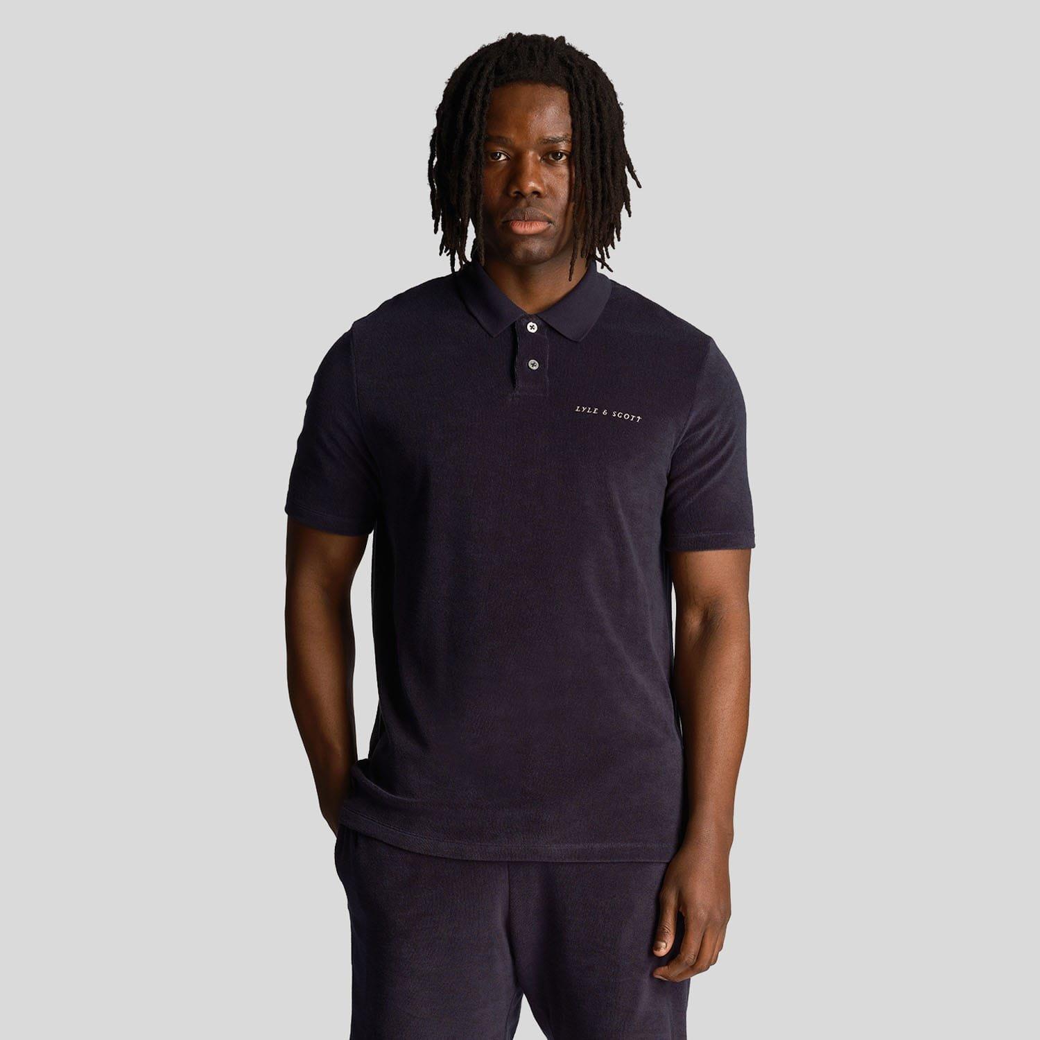 Ribbed polo collar. Short sleeves. Two button placket. Lyle And Scott script logo. Regular fit.