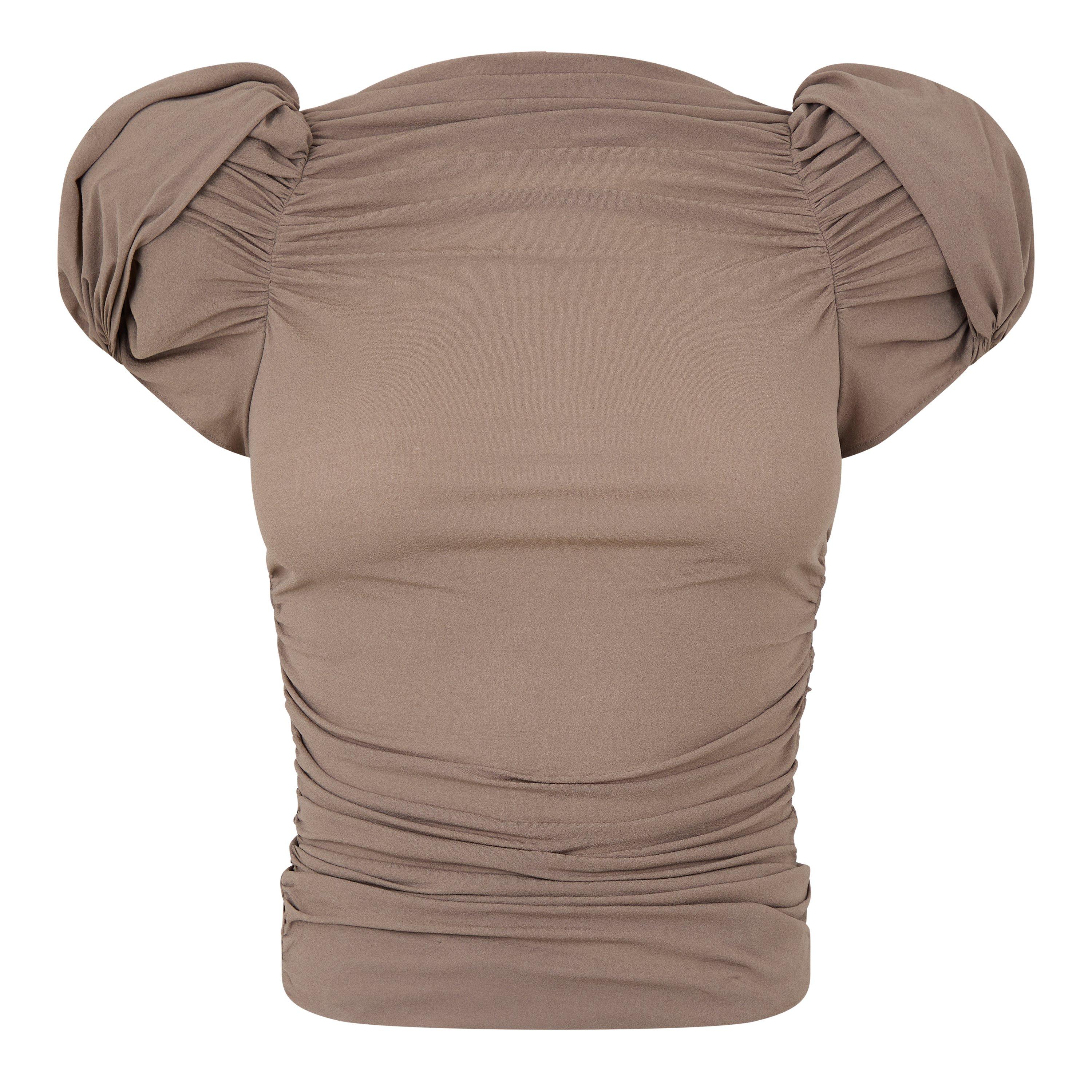 Magda Butrym's Puff Sleeve Ruched T-Shirt offers both style and comfort. The slim fit design includes puffed sleeves and ruching details that create a defined shape.