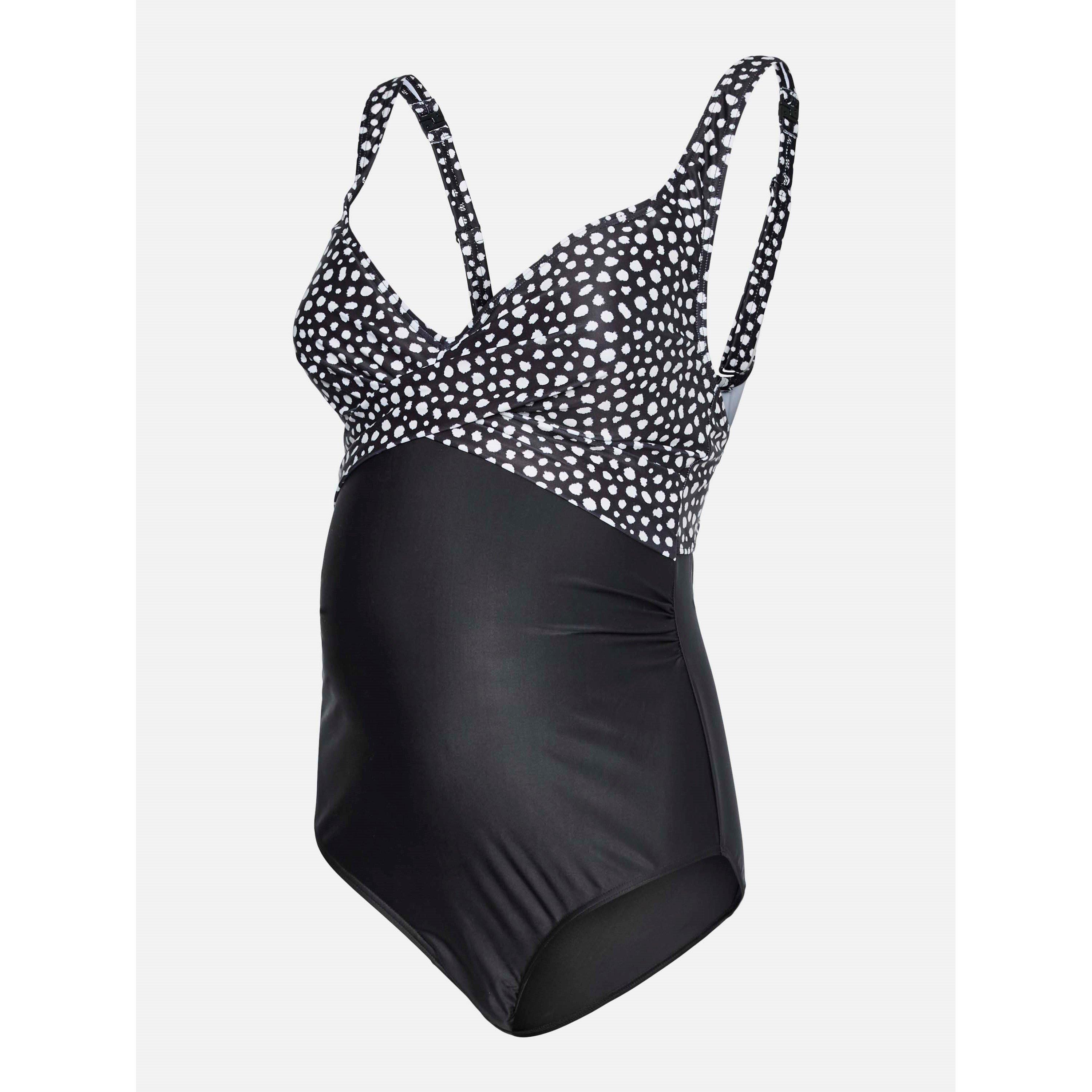 Mamalicious's Mama One Piece Swimsuit features sleek lines with supportive design, offering expectant mothers poolside confidence with practical comfort features in maternity swimwear.