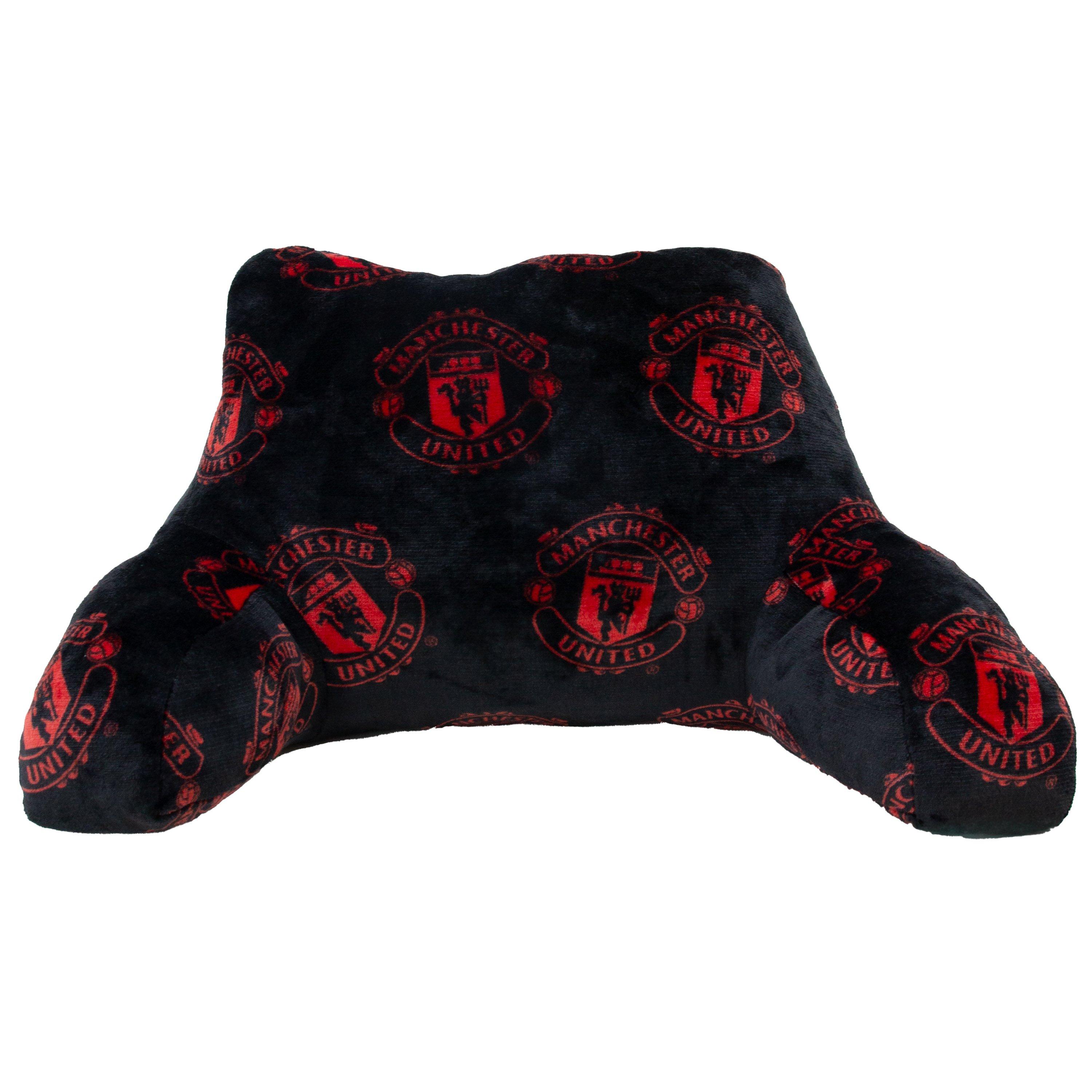 Perfect for Man United fans young and old, this officially licensed Manchester United Football Club cuddle cushion makes for a fantastic gift. Inspired by the clubs’ colours, the ultra comfy cuddle cushion features the iconic Man United crest in red on a black background that runs on to the back of the cushion. The cuddle cushion features a high back rest, offering support when watching the match or gaming on the sofa, or improving posture when reading or working in bed. The MUFC cuddle cushion has chair-style arm rests to hold you or your child in place, and gives a comforting cuddle. The cushion can be turned around and used from the front, offering comfort, or supportive padding when concentrating during a game. Measuring 39cm x 59cm x 45cm (HxWxD), and filled with 100% polyester, the Manchester United football club cuddle cushion is finished with a strokably soft fleece finish. This wrap-around cushion is easy to wipe clean with a damp cloth, just in case of spills or wear and tear and goes great with the rest of our official Man United range