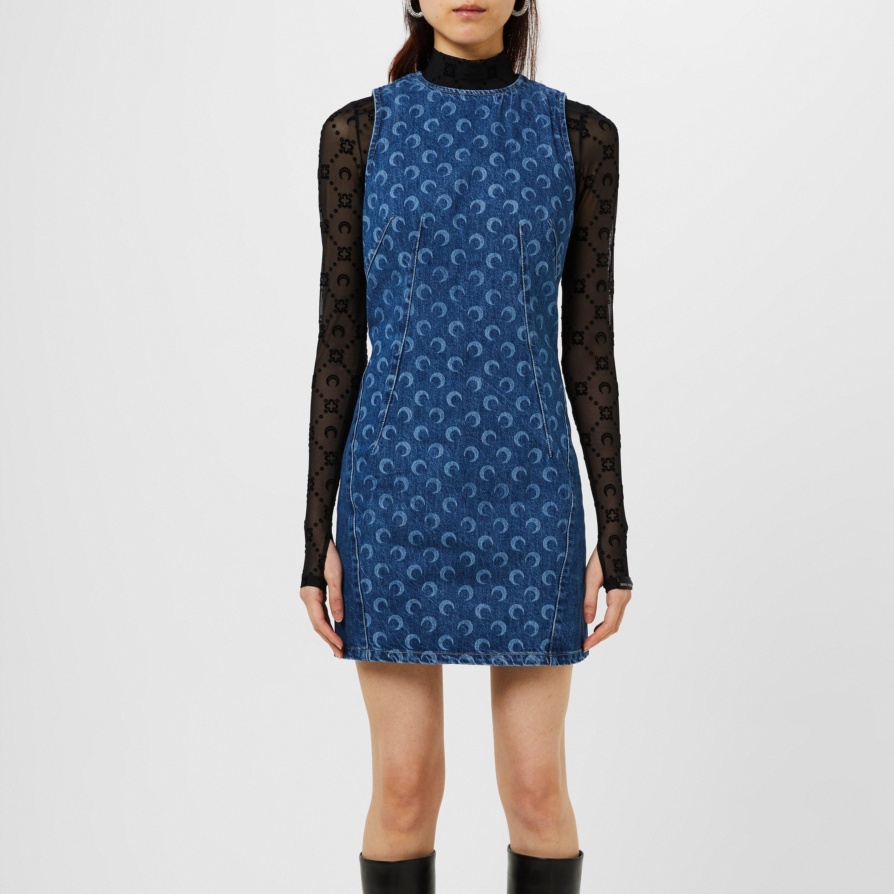 The Deadstock Mini Dress from Marine Serre transforms repurposed materials into contemporary fashion. This women's mini dress showcases a high level of skill through its structured shape and carefully selected upcycled denim.