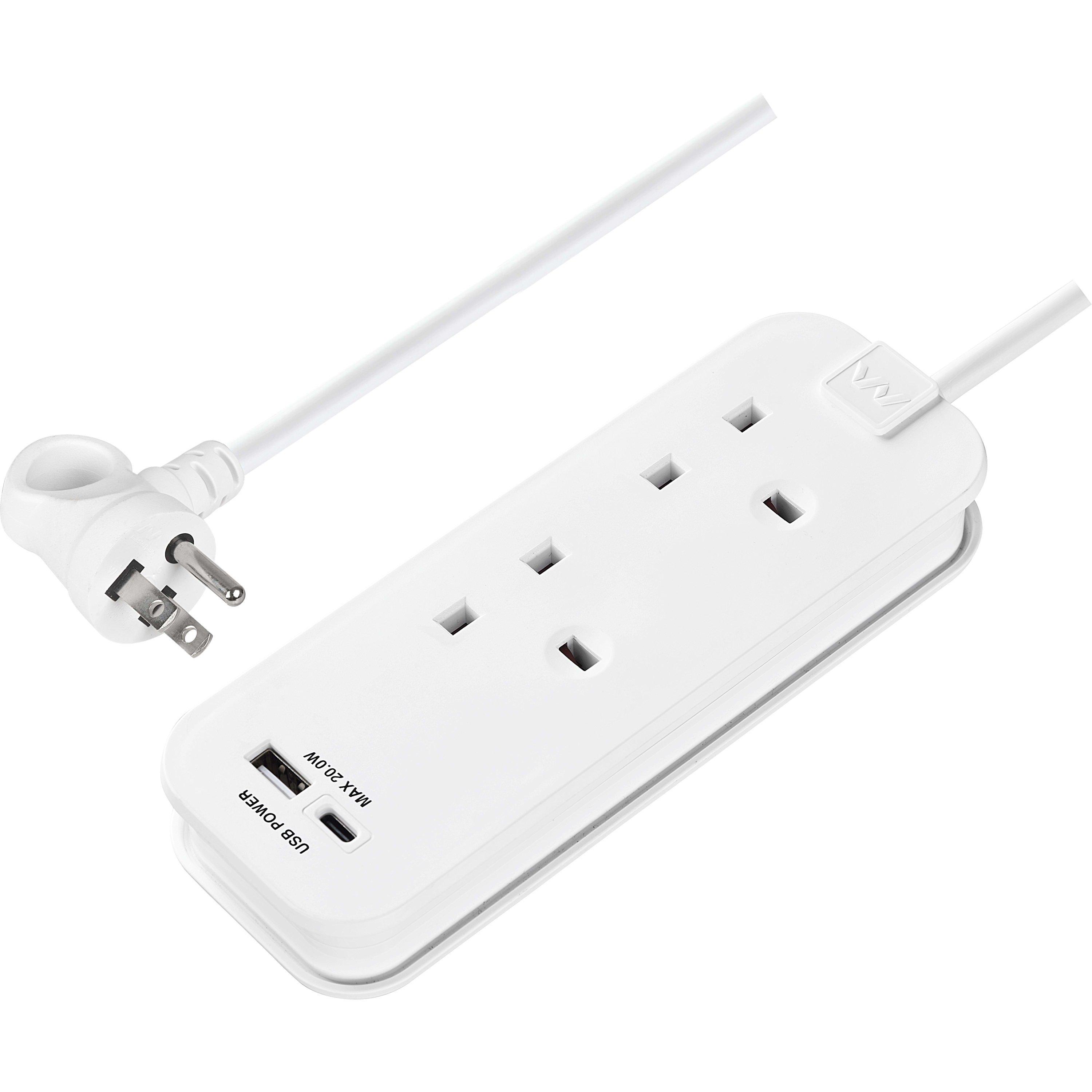 This travel extension lead designed for use in the United States. It features two sockets and two USB ports (Type A and Type C), allowing you to charge multiple devices simultaneously. Its compact design makes it ideal for travel, while the screw-on, hanging, and wall-mounted options provide flexibility for various setups. Perfect for keeping your devices powered and organised, whether you’re at home, in the office, or on the go.