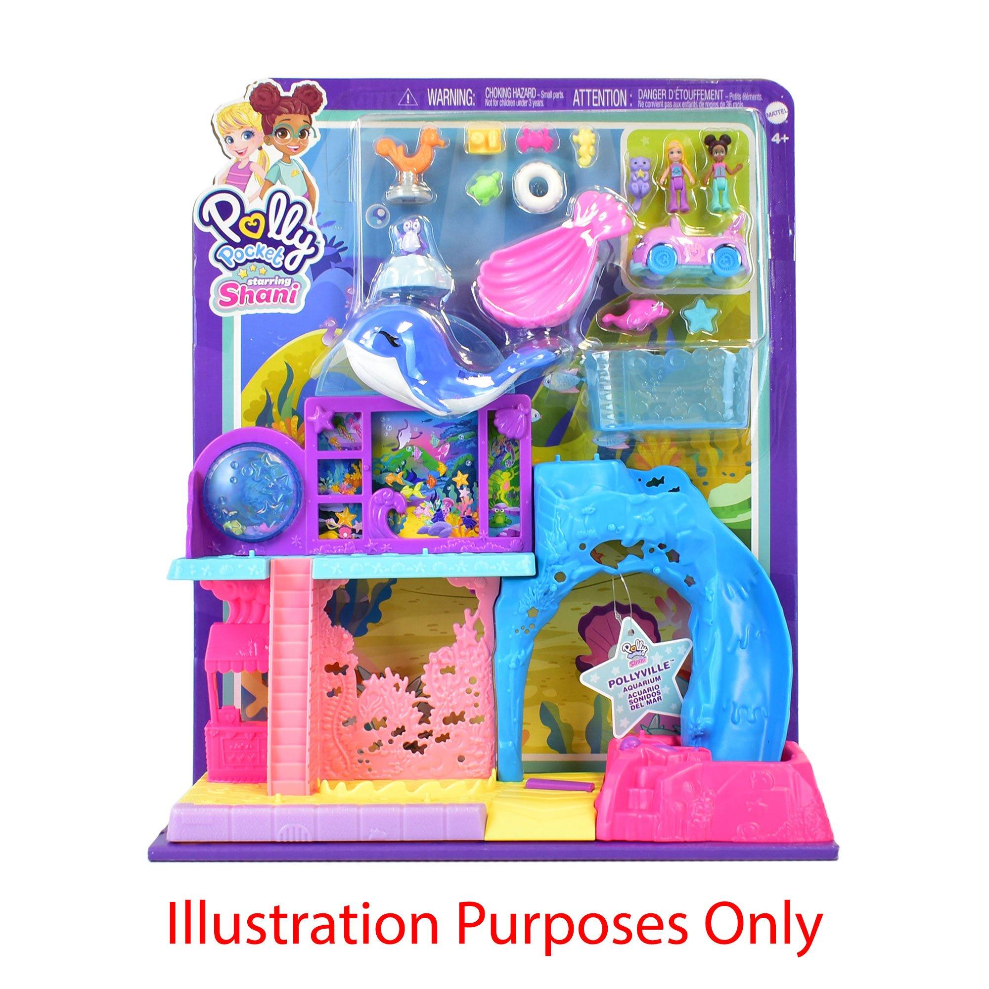 Mattel's Polly Pocket Aquarium Playset invites kids to imaginative underwater adventures with detailed miniature design. Compact and vibrant, this toy features intricate aquatic elements for portable play experiences.