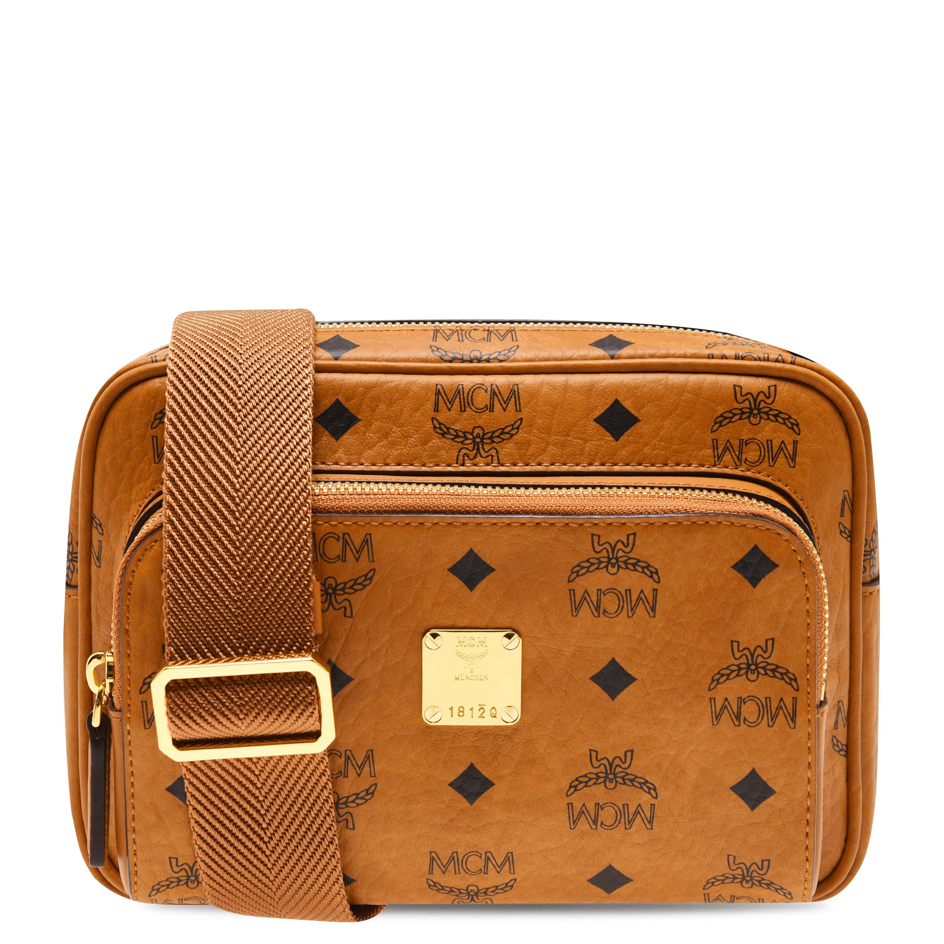 Update your day to drinks attire with this Klassik Cross Body Bag by MCM. Crafted in a luxurious grained leather, this piece boasts a zip closure front compartment as well as a zip closure to the a in compartment, perfect for all your belongings. Suspended from an adjustable woven strap, this cross body bag features the signature MCM logo printed all over. Finished with a branded metal hardware design to the front, this bag would make the perfect versatile piece.