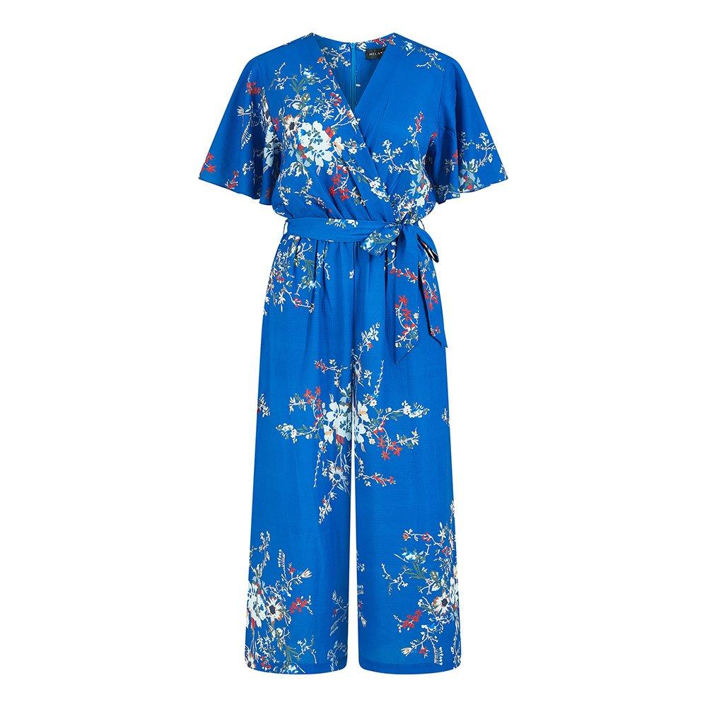 Mela London's Floral Print Jumpsuit pairs a detailed pattern with a flattering shape. The backdrop showcases delicate flowers, creating a standout piece.