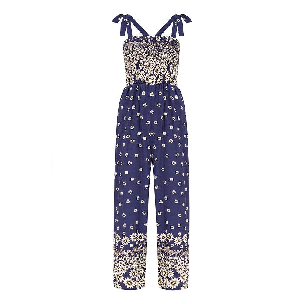 Mela London's Daisy Border Shirred Tie Jumpsuit features floral detailing with a flattering shirred bodice. The graceful design has thoughtful tie accents that add to its relaxed fashion appeal.